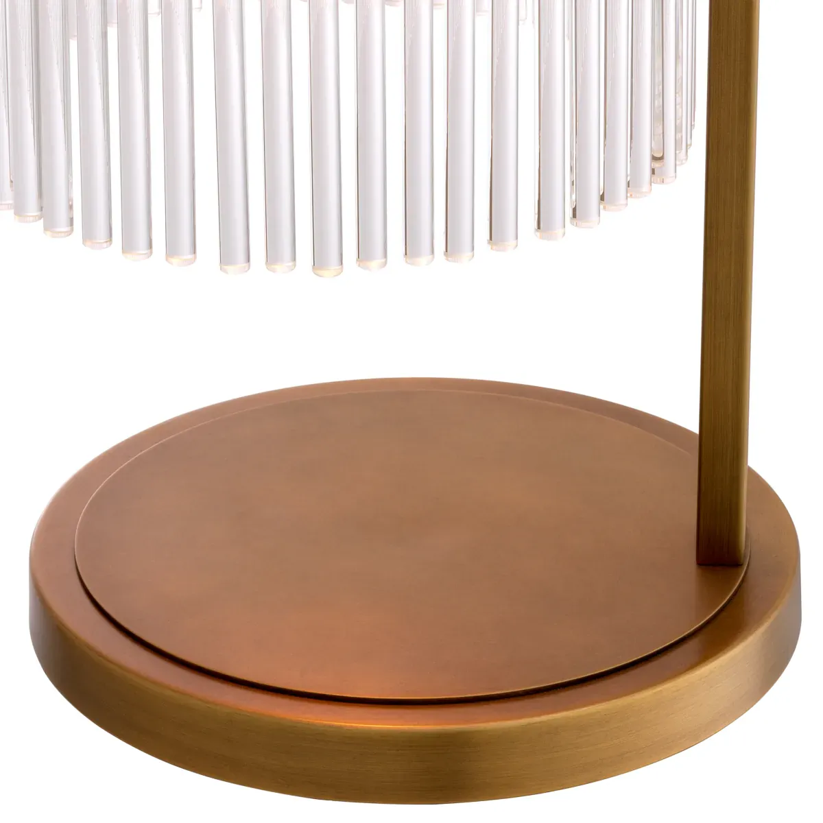 This lamp is an ideal choice for creating a focused accent in a living room, hallway, or bedside setting. Set it on an end table, console, sideboard, or nightstand to bring a warm atmosphere to evening routines. Light passes through the vertical glass rods to create depth and texture, so the lamp reads beautifully from different angles. The round brass pedestal base provides stable support and a flat top platform that complements the shade’s vertical character. With a hand switch for straightforward control, you can tailor the moment—bringing gentle ambiance when you want it most, without visual clutter. Elevate your interiors with our luxury furniture collections, where exceptional craftsmanship and timeless design come together to define sophisticated living spaces.