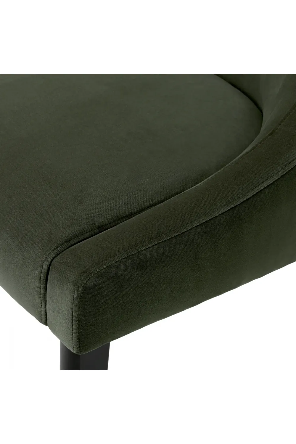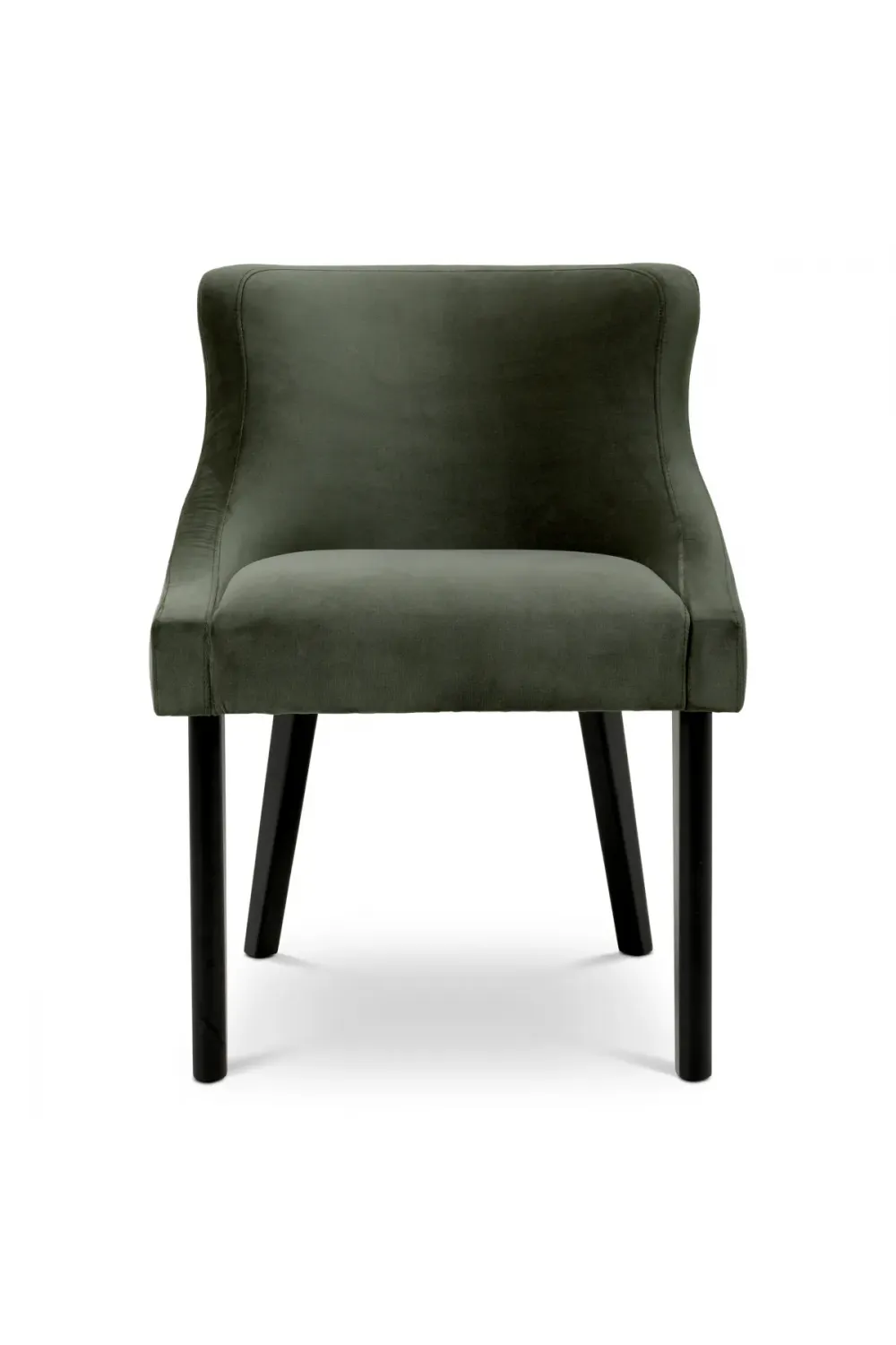 Upholstered in Torrin green and natural velvet, the chair offers a soft, finely woven surface with a delicate sheen. These carefully selected tones add depth and warmth to dining environments, making this dining chair in Torrin green & natural velvet a versatile choice for curated European interiors. The upholstery drapes smoothly across the seat and backrest, delivering both comfort and visual balance.
