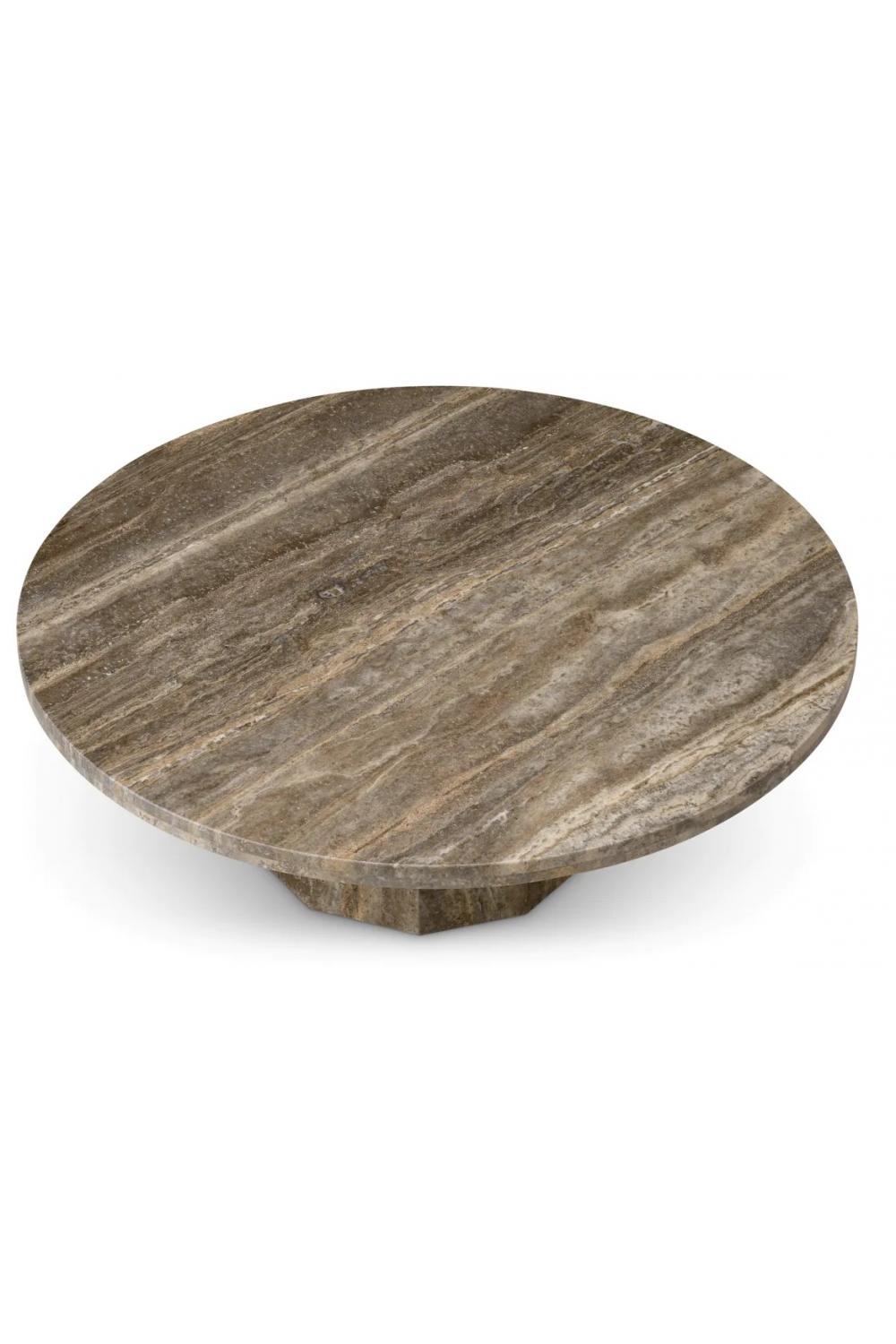 Luxury Travertine Round Coffee Table with Pedestal Base as a sculptural centrepiece