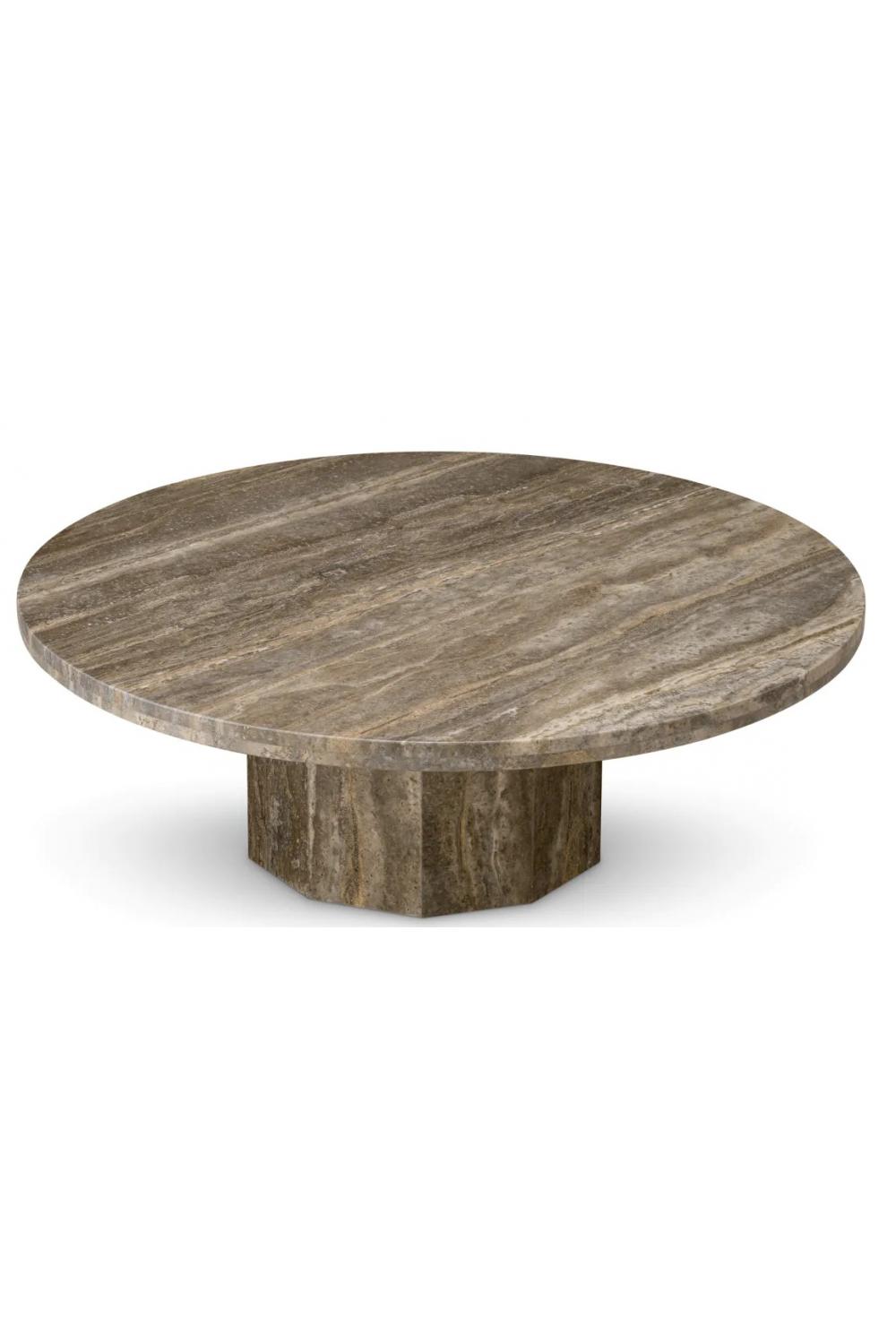 Luxury Travertine Round Coffee Table with Pedestal Base