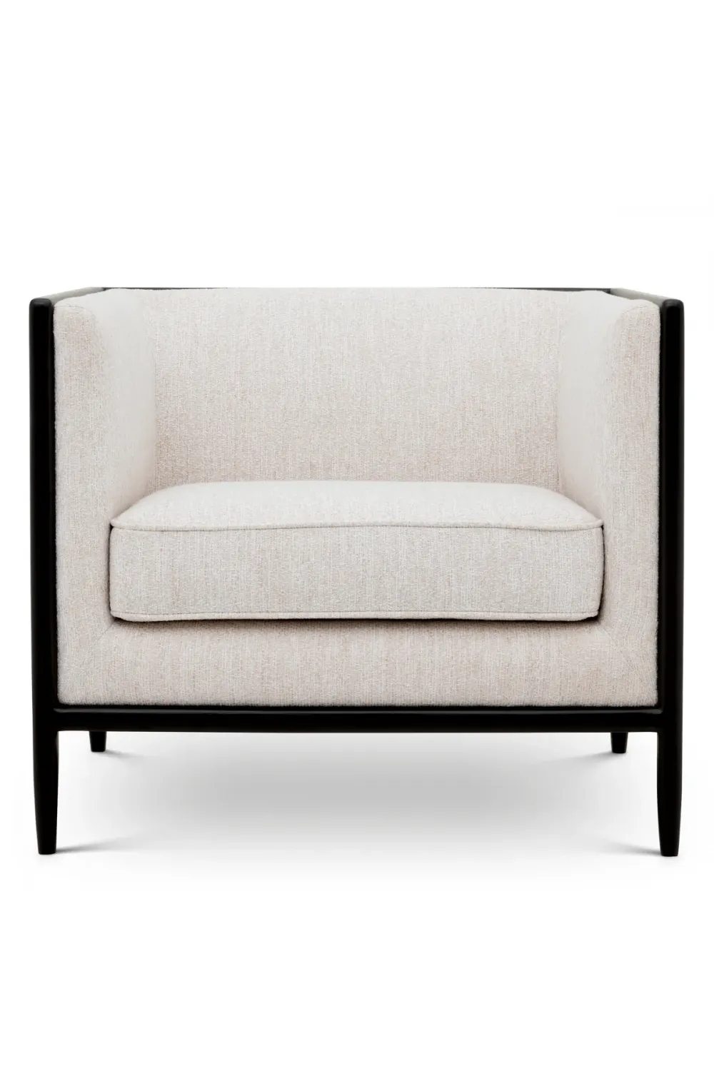 Two-tone upholstery with a structured black frame defines this luxury chair as an icon of modern comfort. This luxury chair introduces visual contrast and tailored elegance into sophisticated interiors. Designed as a Black finish luxury chair, it delivers a bold architectural presence. The contrasting ardent cream interior enhances warmth and refined comfort. Ideal for elegant European homes, it blends versatility, craftsmanship, and timeless appeal.