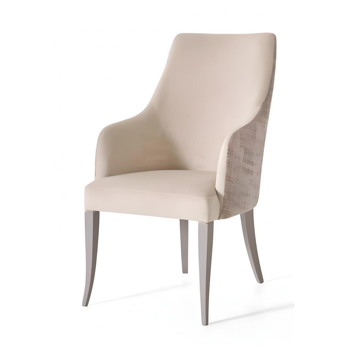 Luxury Upholstered Dining Armchair in Light Beige with Textured Back Panel and Light Greige Legs by Luxury Group International