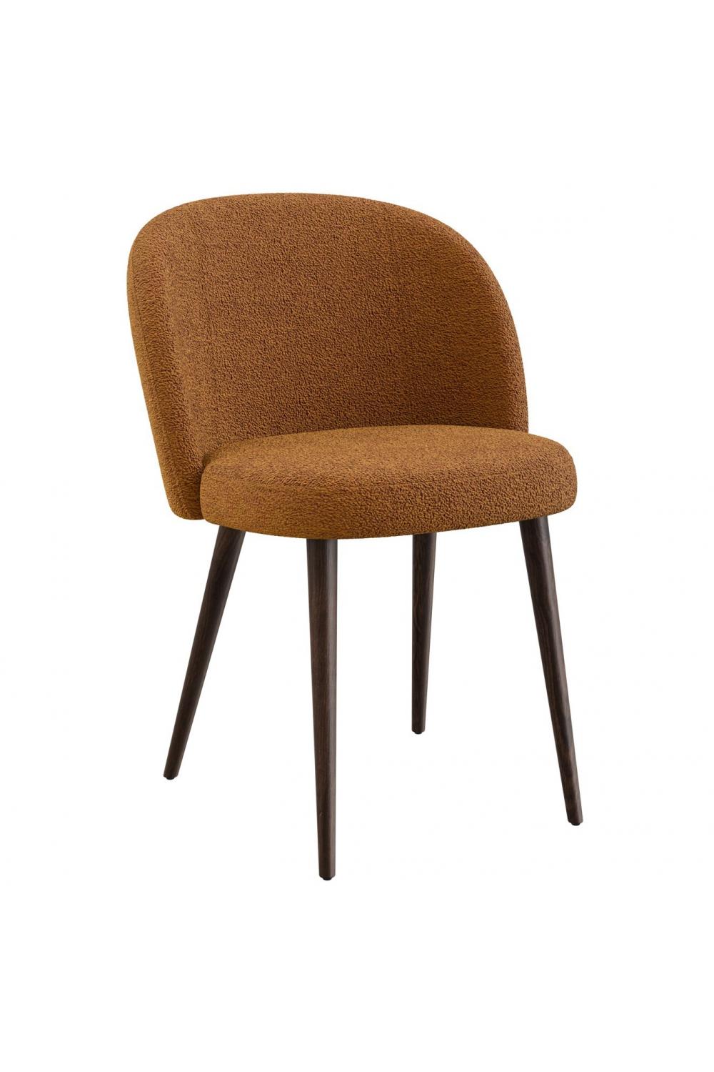 A refined upholstered side chair crafted for modern dining and lounge spaces. The curved back and plush FR foam deliver supportive comfort, while walnut-stained beech legs add natural warmth and durability. Available in multiple fabric and color variants, this versatile piece elevates contemporary interiors with its compact footprint and timeless silhouette—perfect for dining tables, boutique cafés, and stylish home offices.