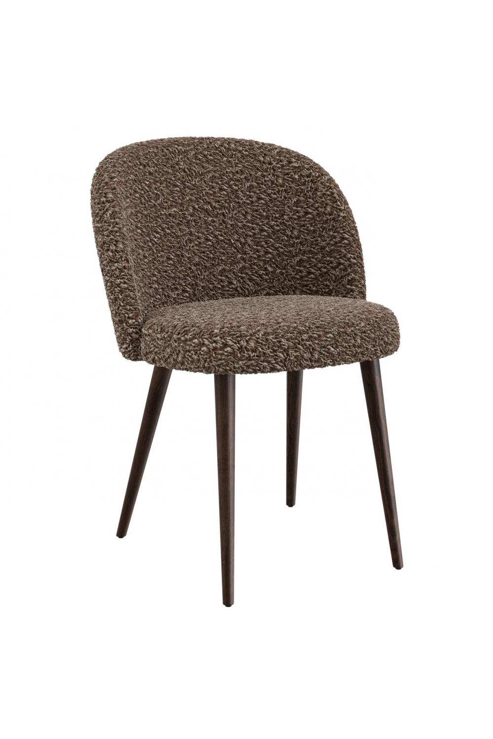 A refined upholstered side chair crafted for modern dining and lounge spaces. The curved back and plush FR foam deliver supportive comfort, while walnut-stained beech legs add natural warmth and durability. Available in multiple fabric and color variants, this versatile piece elevates contemporary interiors with its compact footprint and timeless silhouette—perfect for dining tables, boutique cafés, and stylish home offices.