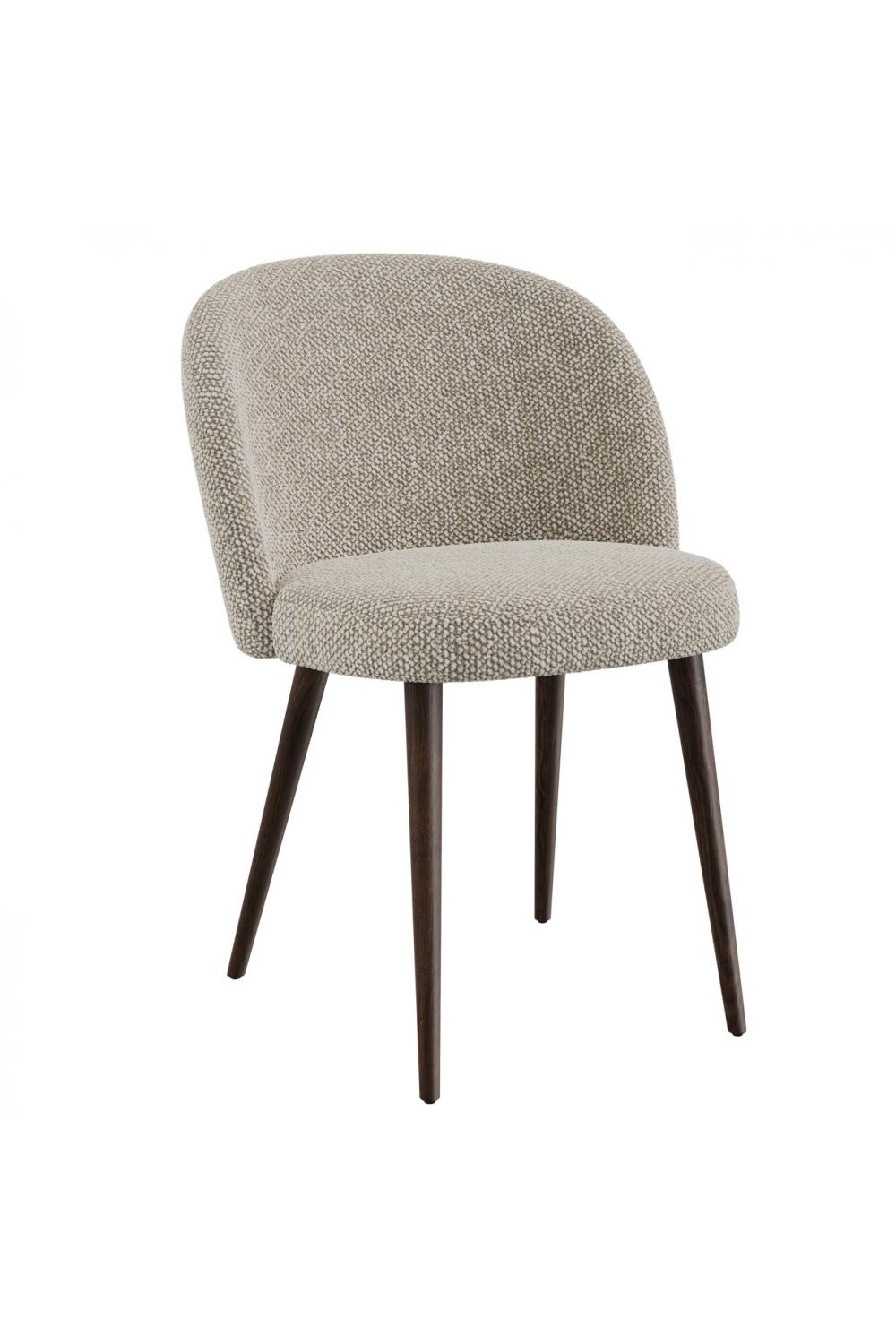A refined upholstered side chair crafted for modern dining and lounge spaces. The curved back and plush FR foam deliver supportive comfort, while walnut-stained beech legs add natural warmth and durability. Available in multiple fabric and color variants, this versatile piece elevates contemporary interiors with its compact footprint and timeless silhouette—perfect for dining tables, boutique cafés, and stylish home offices.