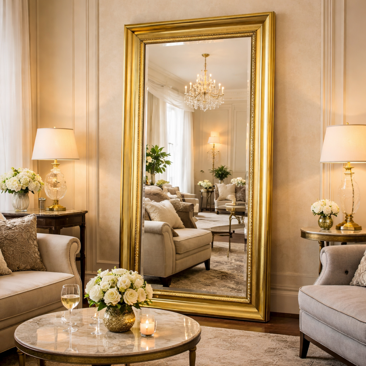 • Ideal vertical accent among premium luxury mirrors for living room interiors