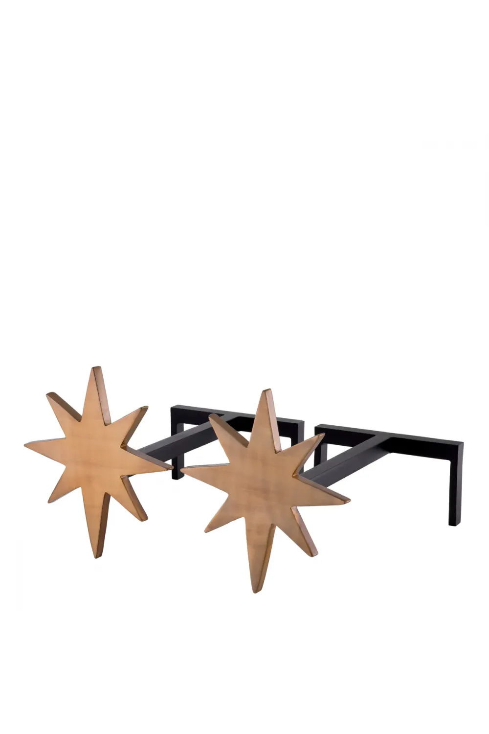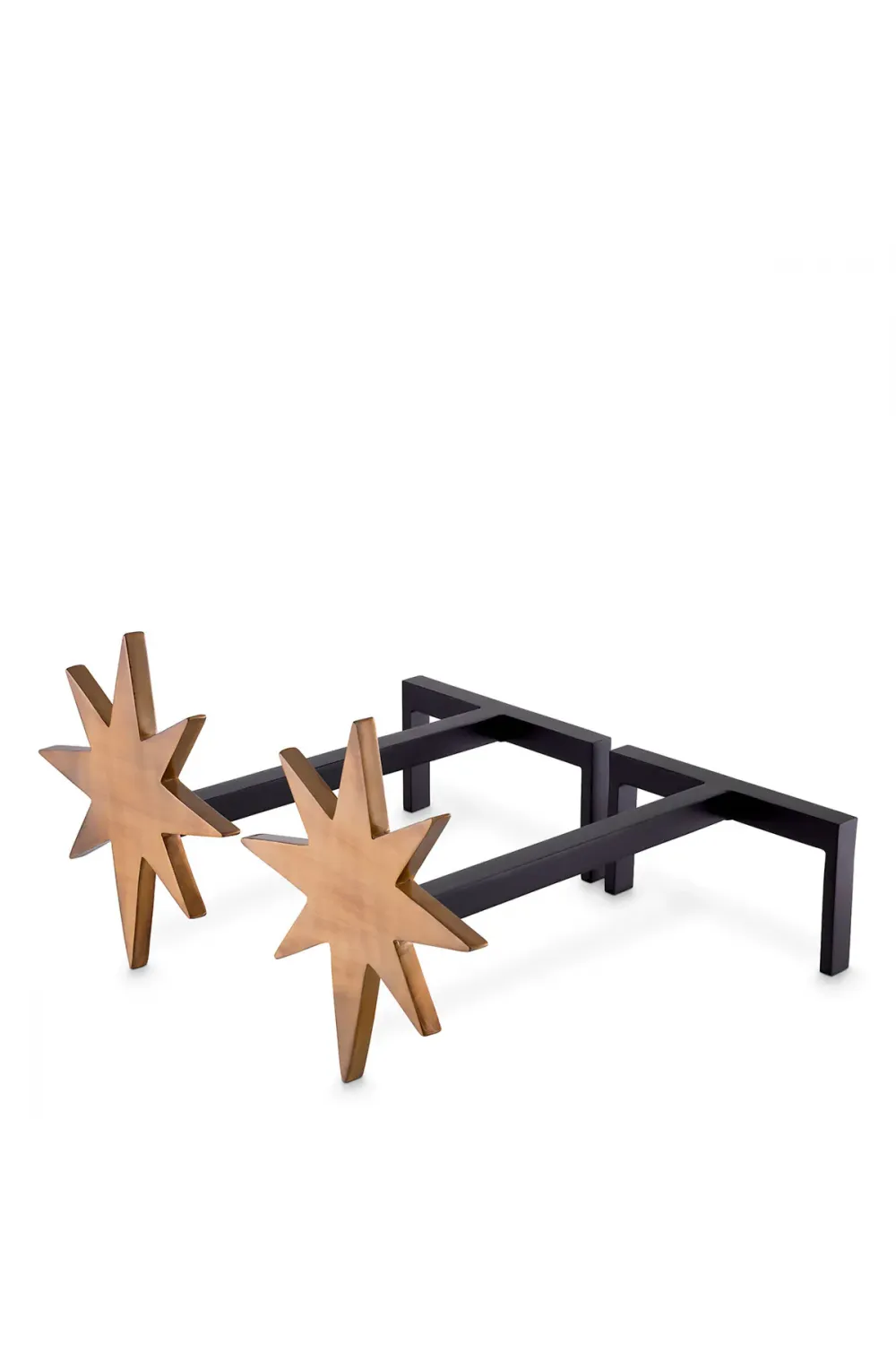This 2-piece set features strong rear supports paired with decorative upright star-shaped guards, ensuring both stability and visual sophistication. The raised structure improves airflow beneath your firewood, promoting cleaner burning, better combustion, and reduced smoke—key elements for an efficient and elegant fireplace setup. The star guards also help prevent logs from rolling out of the hearth, adding a functional safety layer without compromising aesthetics.