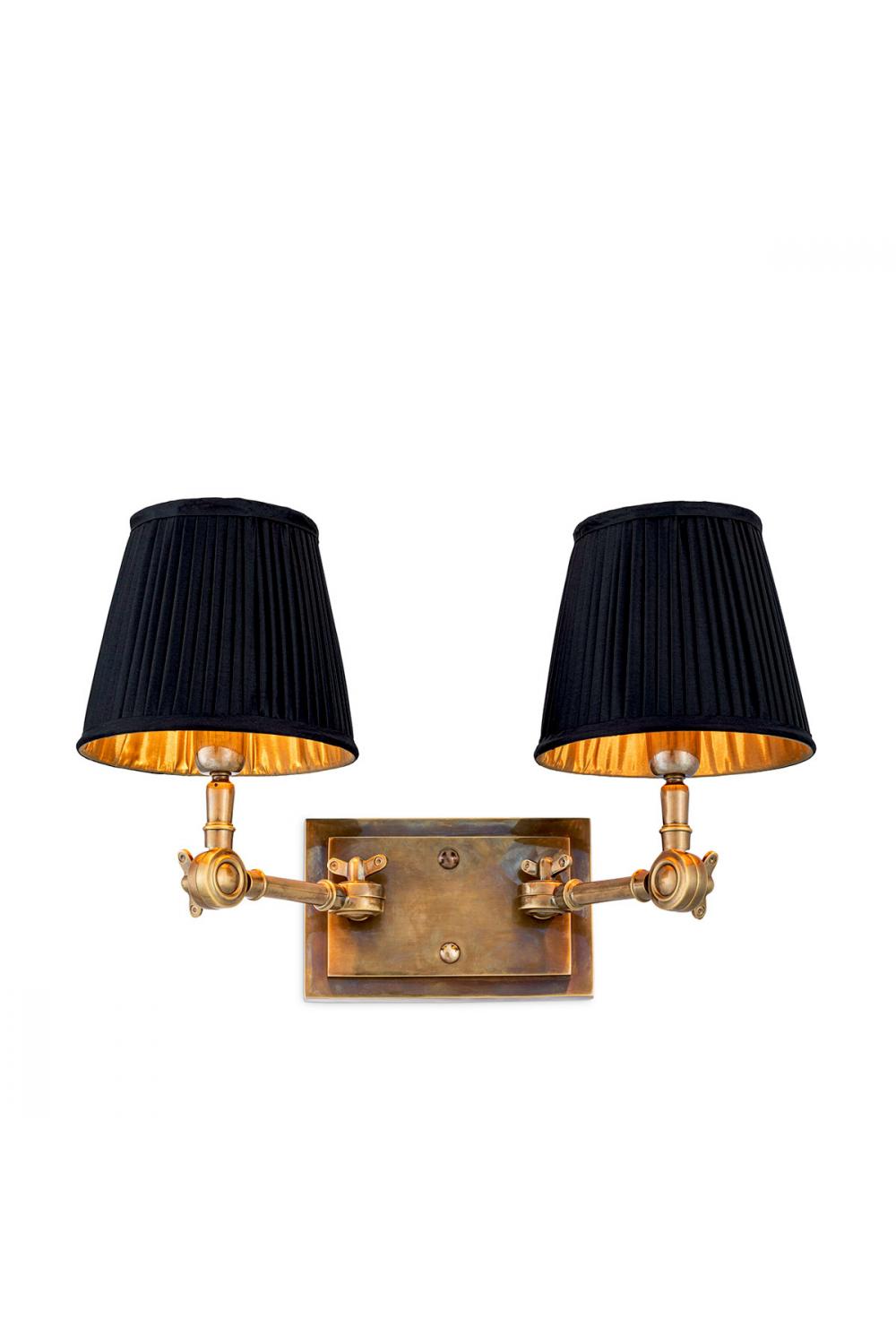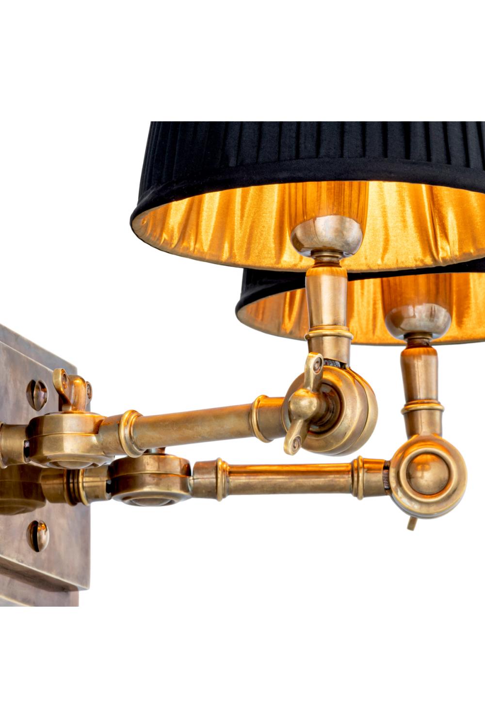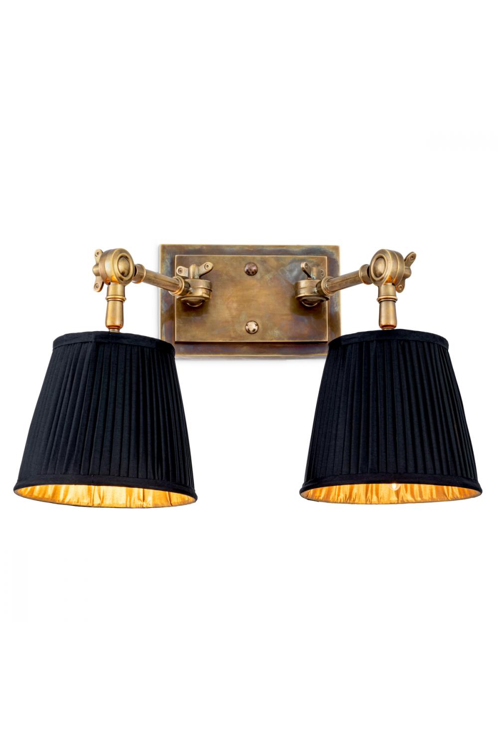 Luxury Vintage Brass Double Wall Lamp with Black Pleated Shades