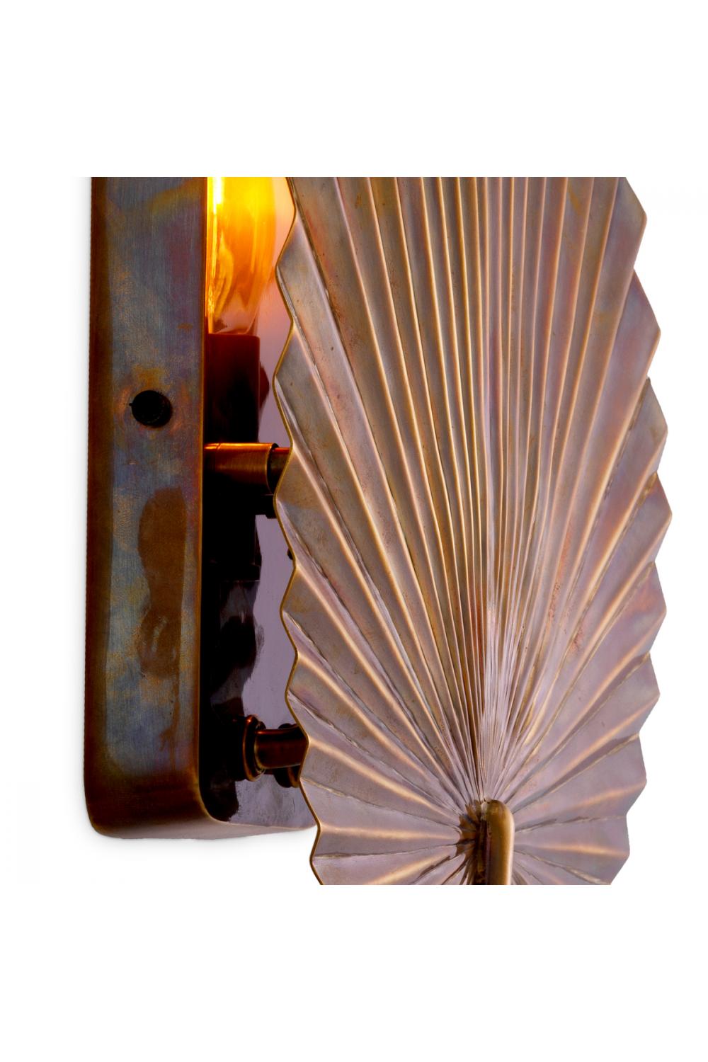A sculptural luxury wall lamp featuring a fan-inspired silhouette in vintage brass, designed to add refined warmth and artistic elegance to sophisticated living spaces.