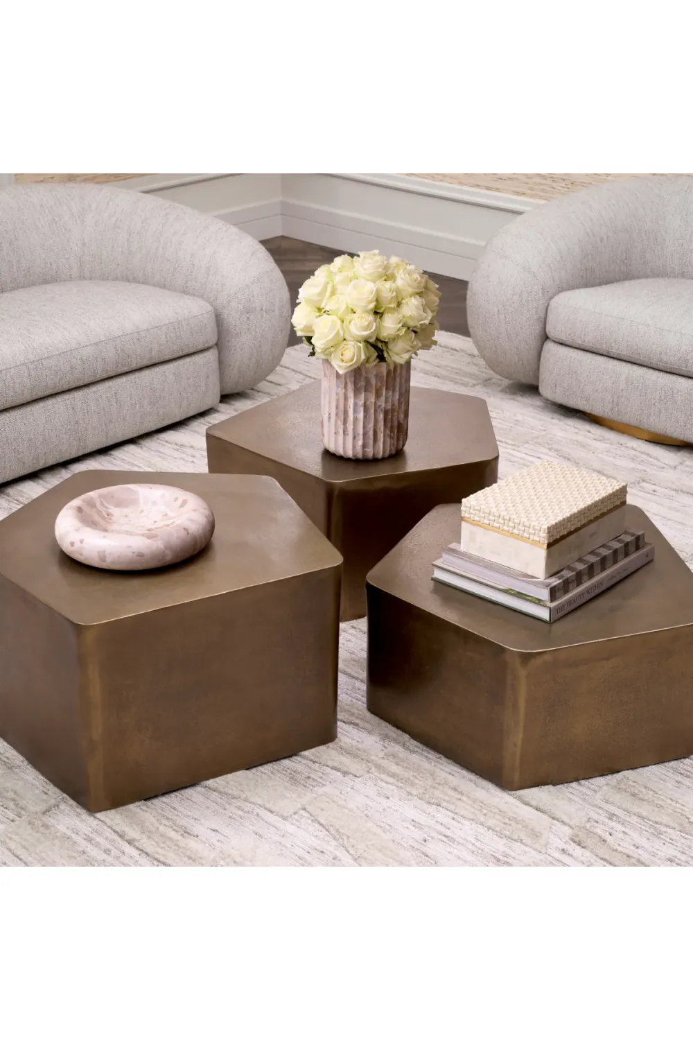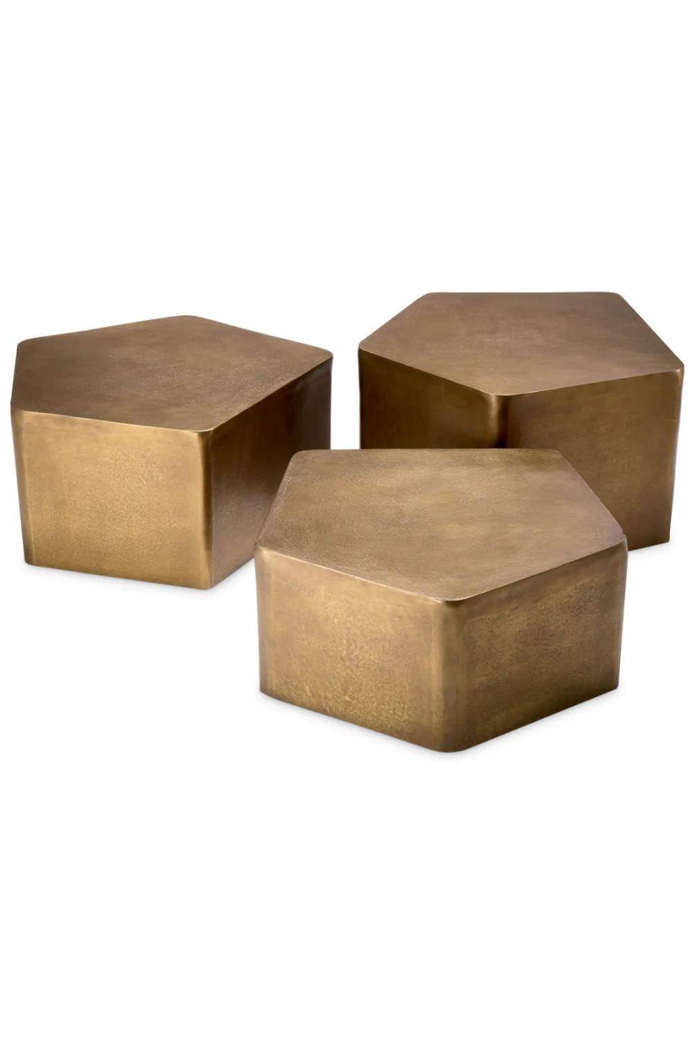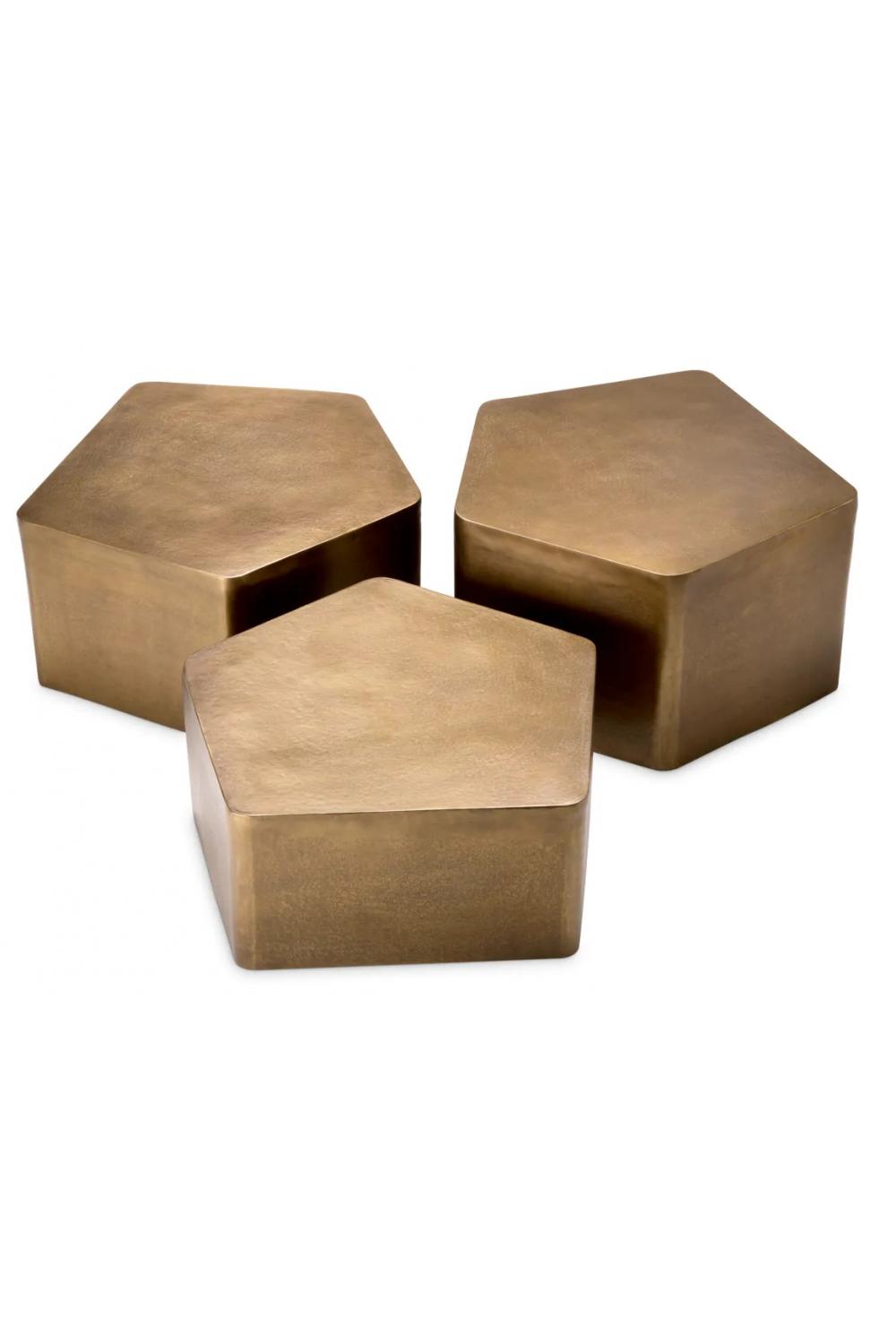 Luxury Vintage Brass Finish Pentagon Coffee Table Set of 3 crafted for statement interiors