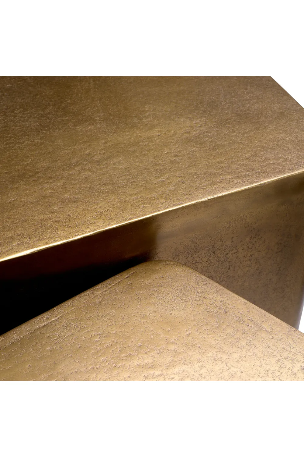 Finished in a rich vintage brass finish coffee table surface, each piece reflects warmth, texture, and heritage-inspired elegance. The handcrafted metallic tone adds character while maintaining a refined aesthetic suitable for premium interiors. As a modern coffee table, the set complements contemporary, industrial, and luxury décor styles effortlessly. The geometric design introduces architectural interest, while the smooth brass finish ensures a cohesive and polished look. Designed with versatility in mind, this luxury coffee table set adapts seamlessly to both compact and spacious living rooms.