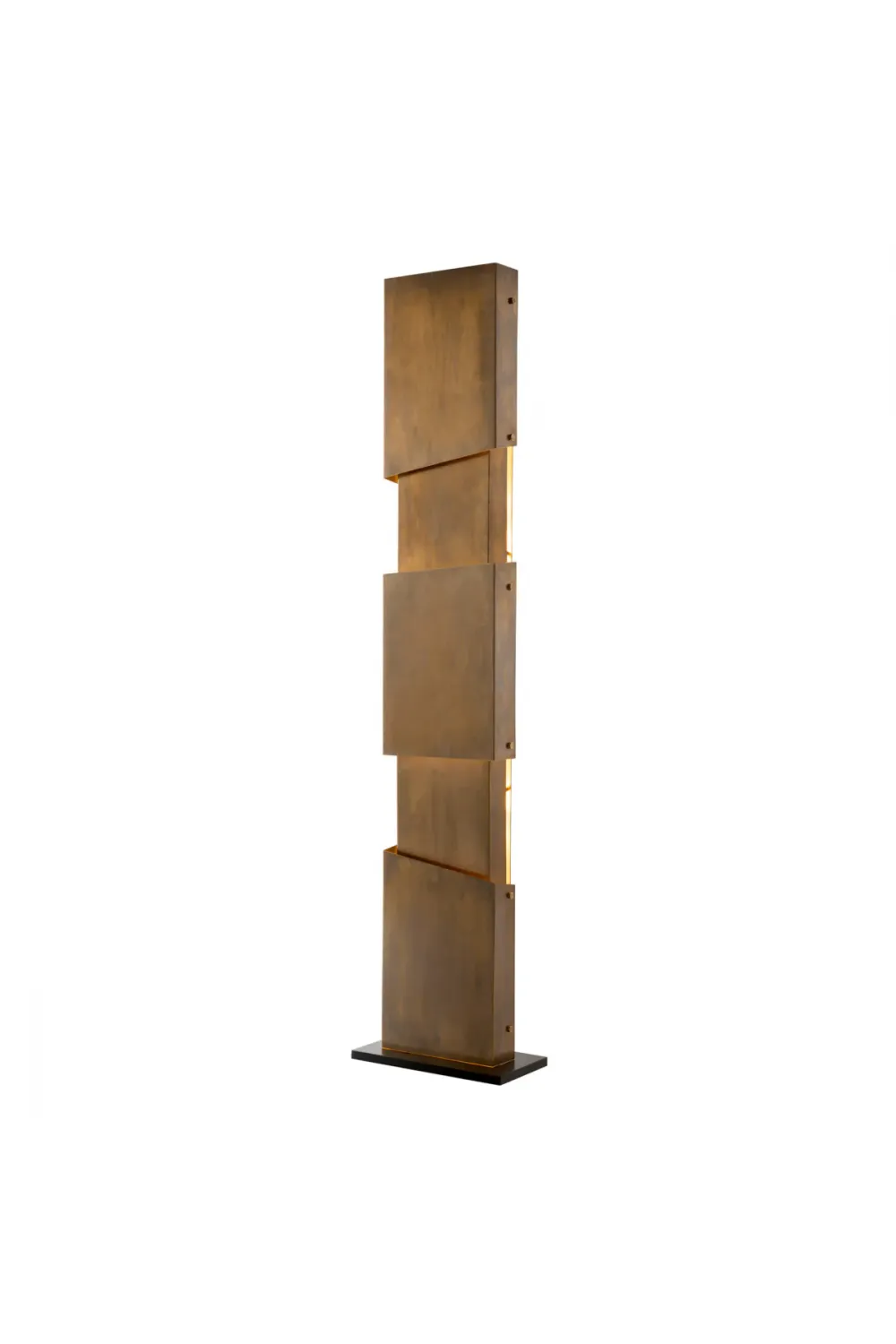 The Luxury Vintage Brass Finish Pillar Shaped Floor Lamp serves as a definitive centerpiece, a luxury floor lamp crafted for those who appreciate the intersection of fine art and functional lighting. Inspired by modern architectural monoliths, this vintage brass monolith light features a graphic, tiered panel framework that adds a massive vertical element to any room. The structure is finished in a rich, hand-treated vintage brass finish, providing a deep, muted luster that ensures it harmonizes perfectly with high-end furniture and curated industrial brass floor fixture aesthetics. As a sculptural brass floor lamp, its bold brutalist style brass lamp influence offers a timeless appeal for contemporary interiors.