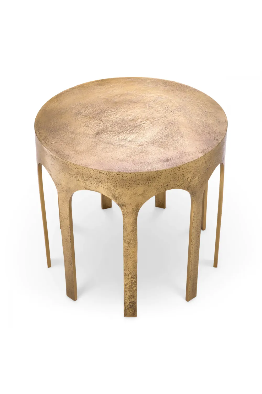 Resting on a sculptural base, this table showcases side table with multiple legs, creating a striking visual rhythm that enhances stability and artistic appeal. The carefully designed table with designer legs gives the piece architectural presence while maintaining balance and proportion. Inspired by refined European design traditions, the structure supports the tabletop seamlessly, making it an ideal luxury modern side table for premium residential spaces. The brushed metallic tone evokes timeless charm, positioning it as a standout vintage brass finish table that blends seamlessly with modern décor palettes.