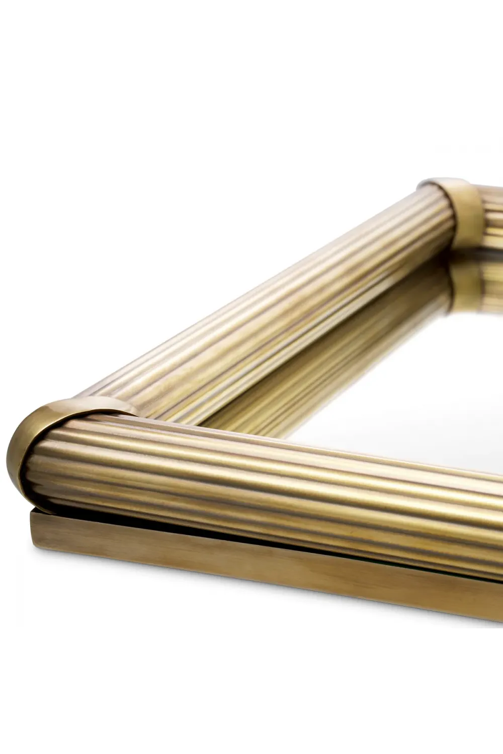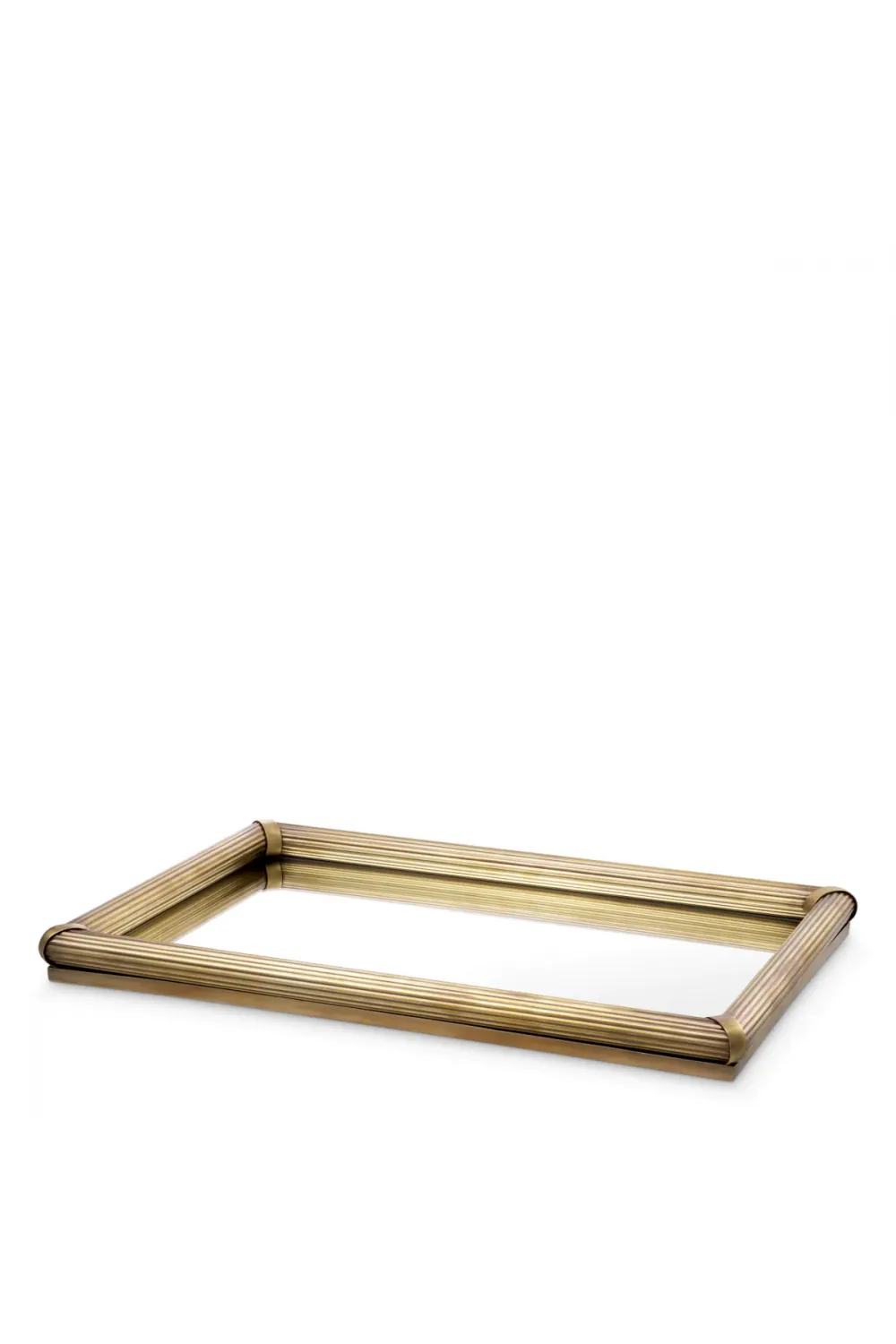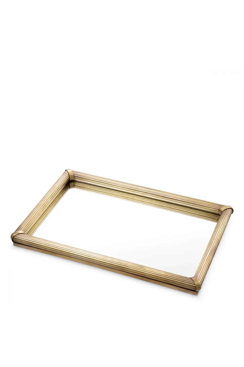 Premium luxury vintage brass tray with ribbed handcrafted frame