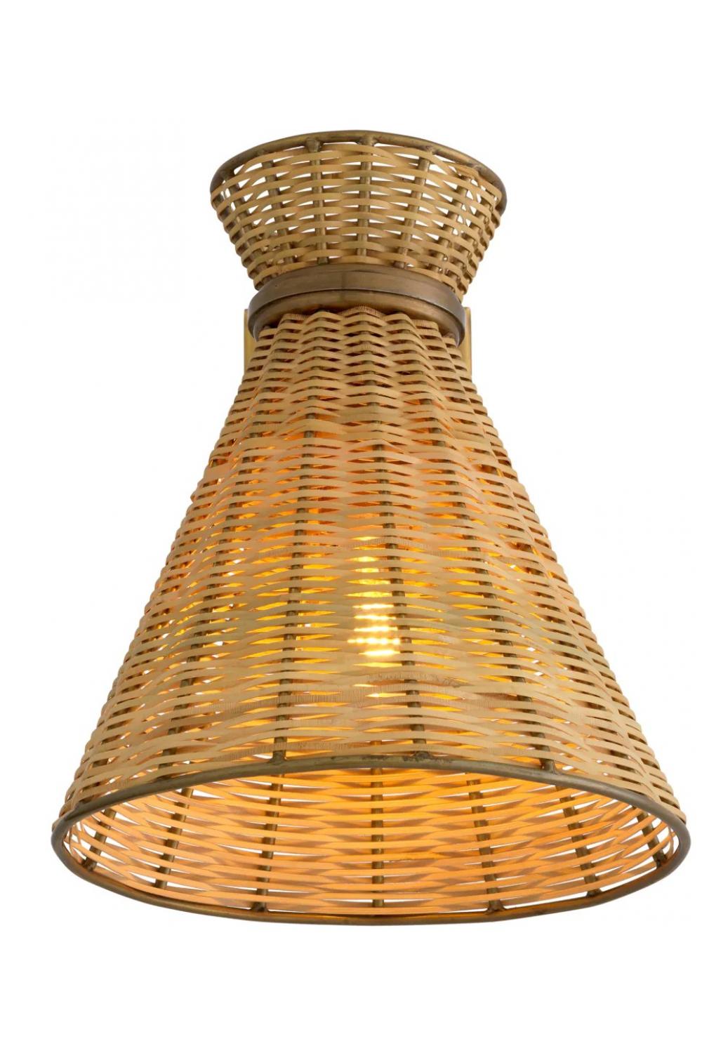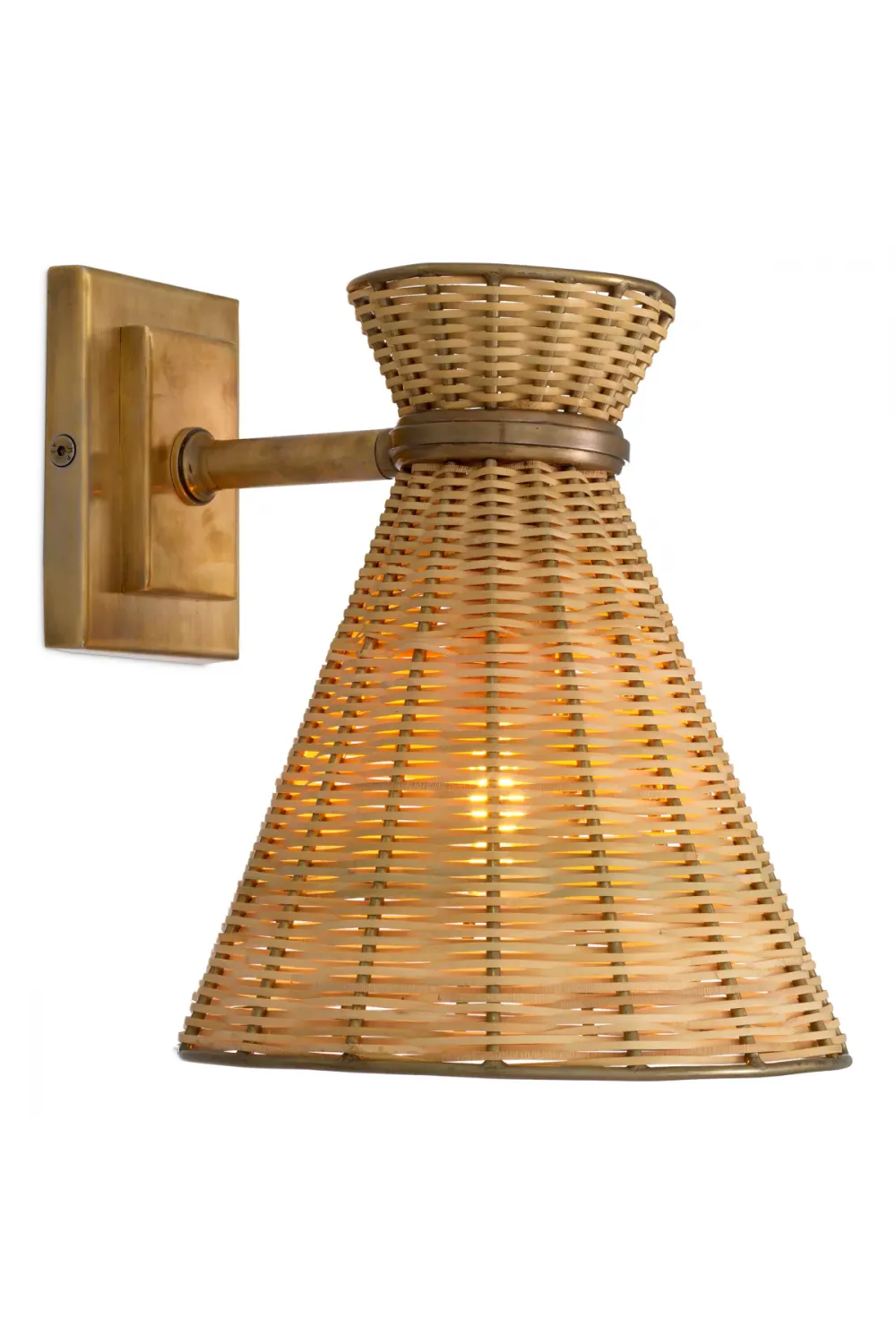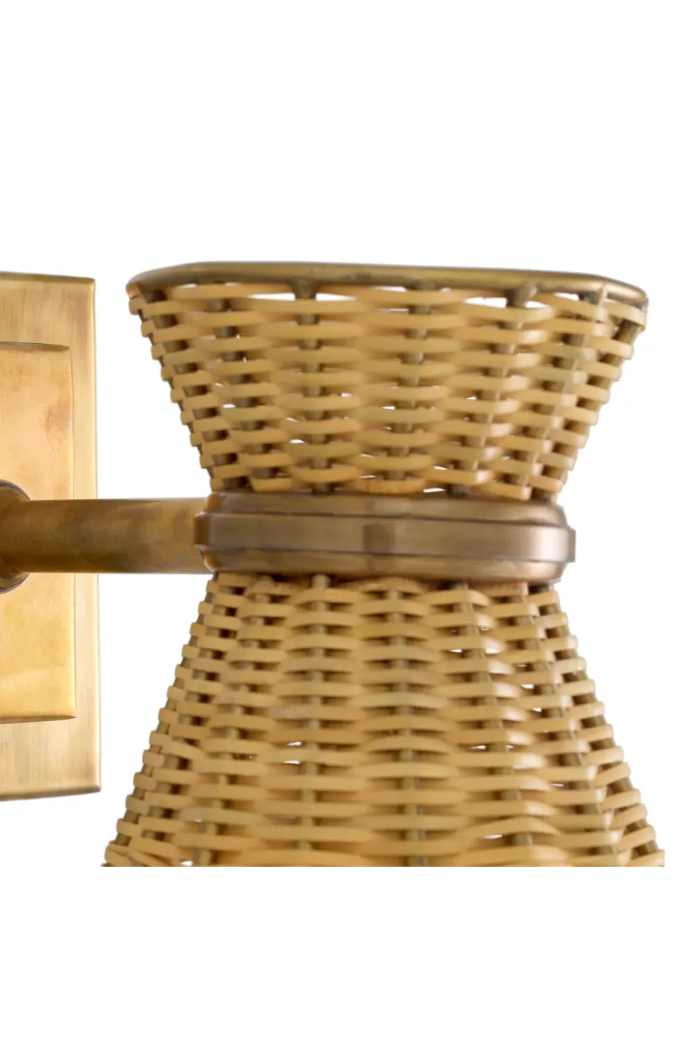 Luxury Vintage Brass Finish Wall Lamp with Natural Rattan