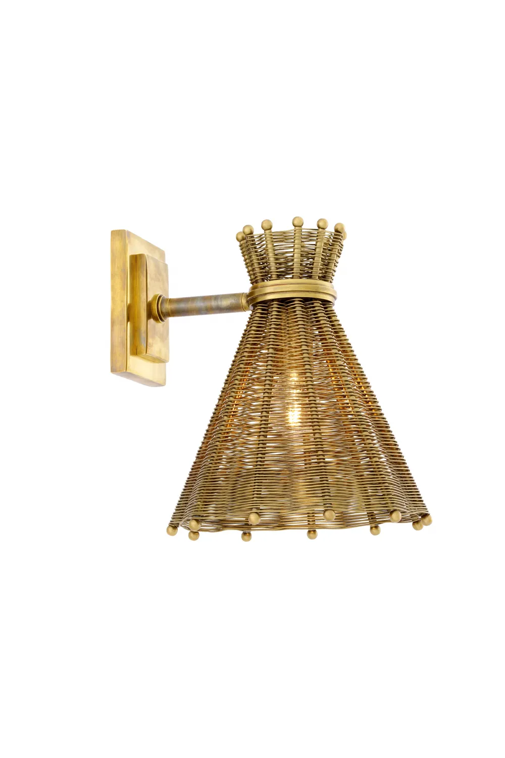 A sculptural luxury wall lamp crafted in vintage brass with an elegant woven silhouette, designed to elevate interiors with warmth and texture. This vintage brass finish wall lamp offers atmospheric illumination while showcasing the charm of a wall lamp with woven rattan look.