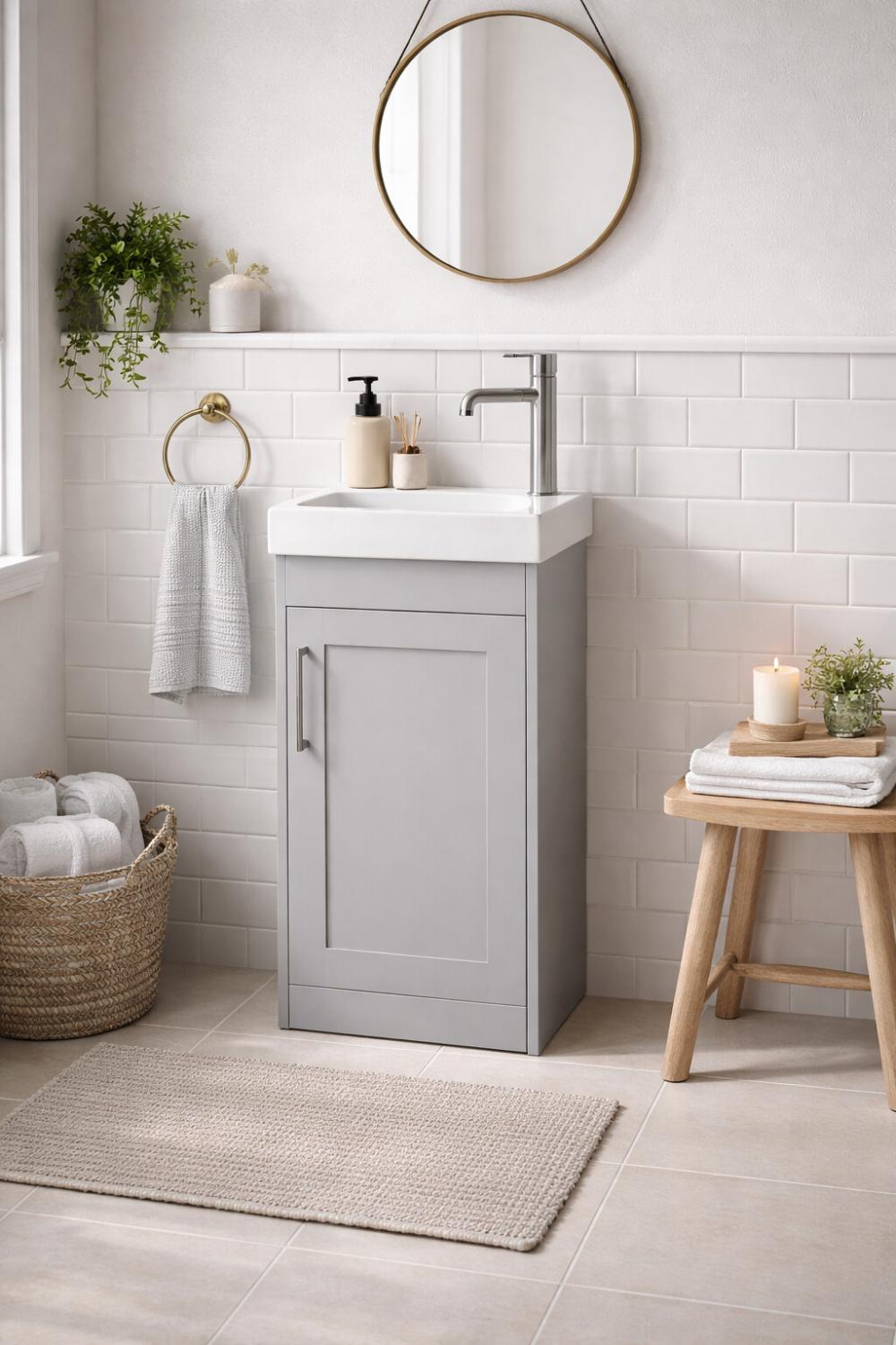 Luxury Wall Hung Single Door Cloakroom Unit in Dove Grey Finish – 40 CM is designed to bring clarity, balance, and modern refinement to compact interiors. Featuring a clean floating silhouette, this wall hung single door cloakroom unit creates an open, lightweight appearance while discreetly housing everyday essentials behind a smooth single-door front. The Dove Grey finish delivers a calm, contemporary aesthetic that integrates seamlessly into modern and transitional European bathroom designs.