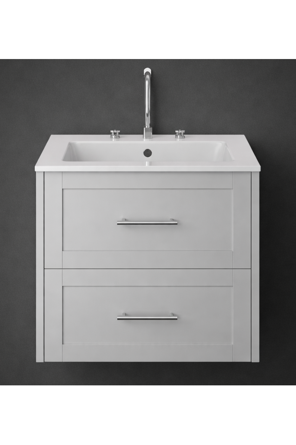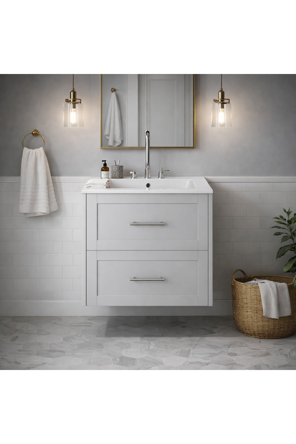 Luxury Wall Hung Two Drawer Vanity Unit in Dove Grey Finish – 60 CM is crafted to bring balance, clarity, and contemporary refinement to modern bathroom spaces. Designed with a clean floating profile, this wall hung two drawer vanity unit creates a visually light and uncluttered environment while offering generous storage through two smooth-gliding drawers. The Dove Grey finish delivers a calm, sophisticated tone that integrates seamlessly into modern and transitional European interiors.