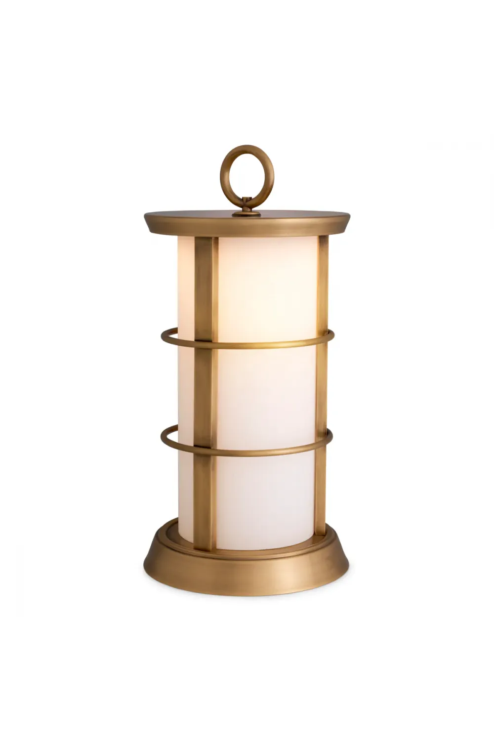 Constructed with durability and design in mind, this outdoor table lamp withstands exterior elements while maintaining its luxurious look. The white glass diffuser offers gentle, balanced illumination, perfect for intimate evening gatherings, relaxed outdoor dinners, or creating a serene nighttime ambience. Its antique brass finish adds depth, character, and timeless appeal, making it a true statement piece.