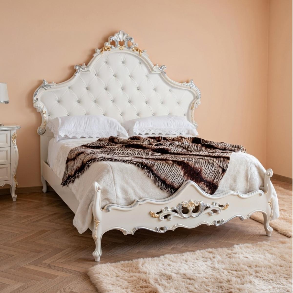 Luxury White Lacquer Baroque Tufted Double Bed with Silver & Gold Carved Frame — 203×210 CM by Luxury Group International