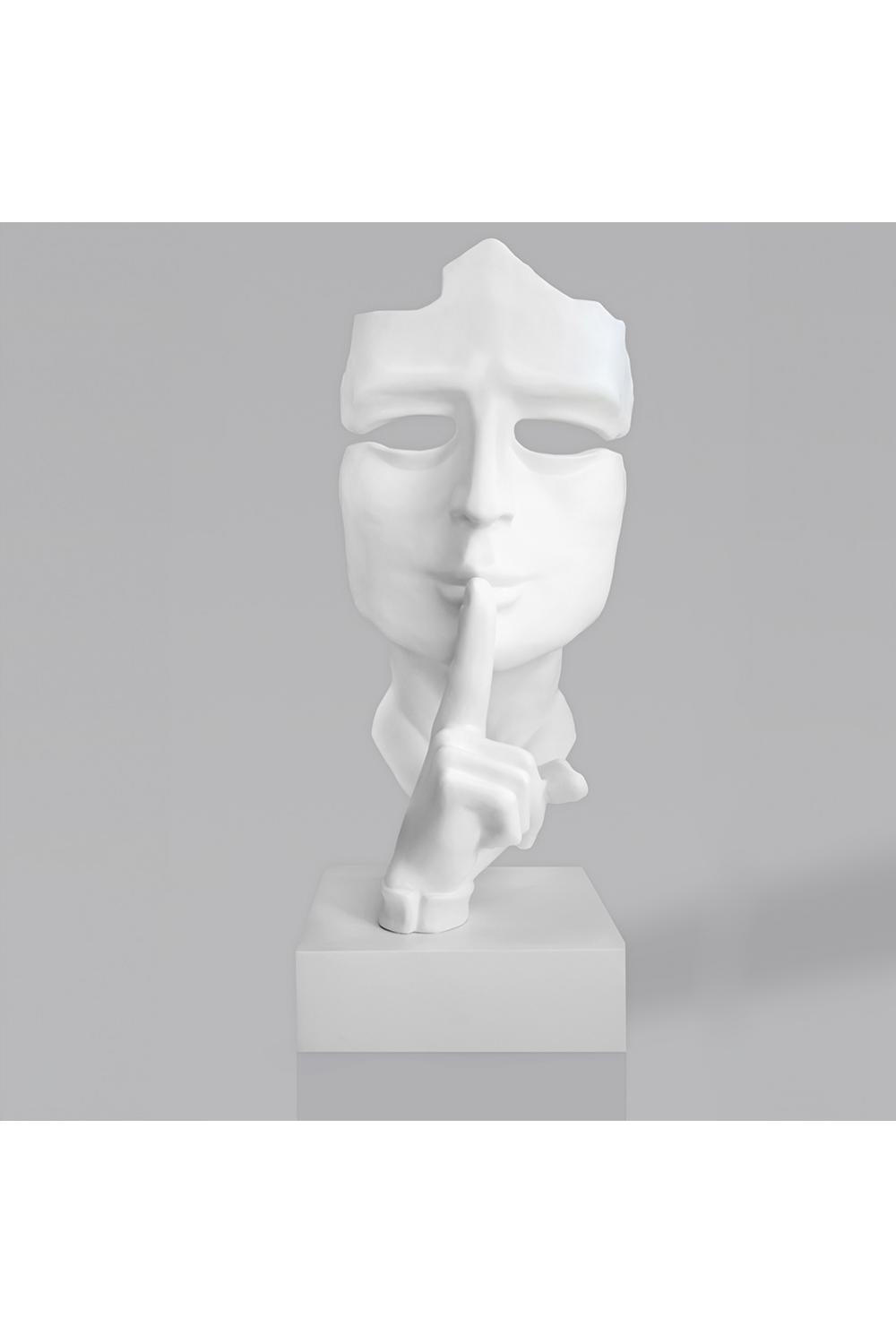 This life-size sculpture embodies the harmony of modern minimalism and expressive artistic form. The fragmented white face creates a sculptural interplay of light and shadow, while the raised finger conveys a contemplative sense of silence. The piece exudes purity, serenity, and refined elegance, making it a compelling focal point in sophisticated interiors.