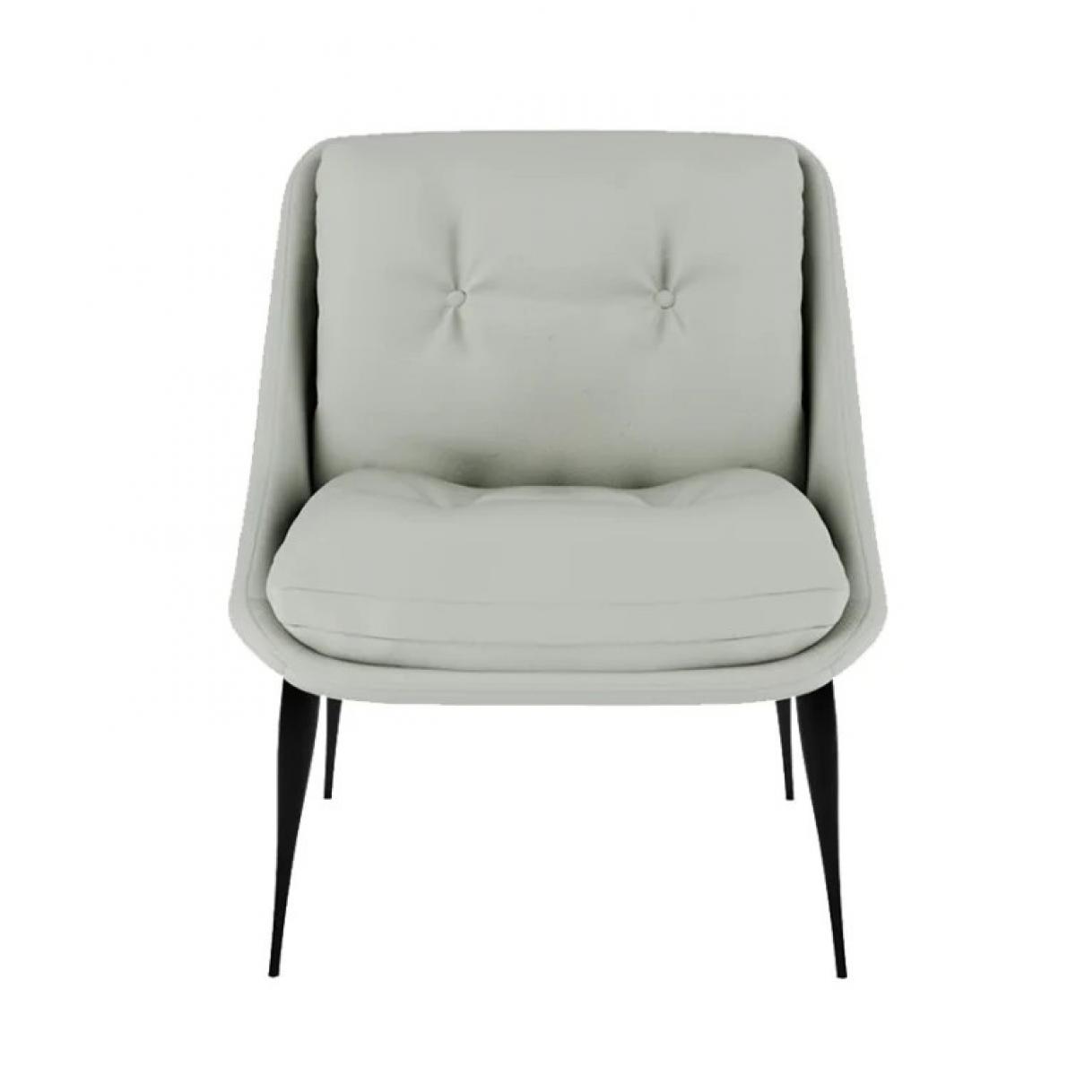 • Modern designer armchair with sleek metal legs and minimalist luxury appeal