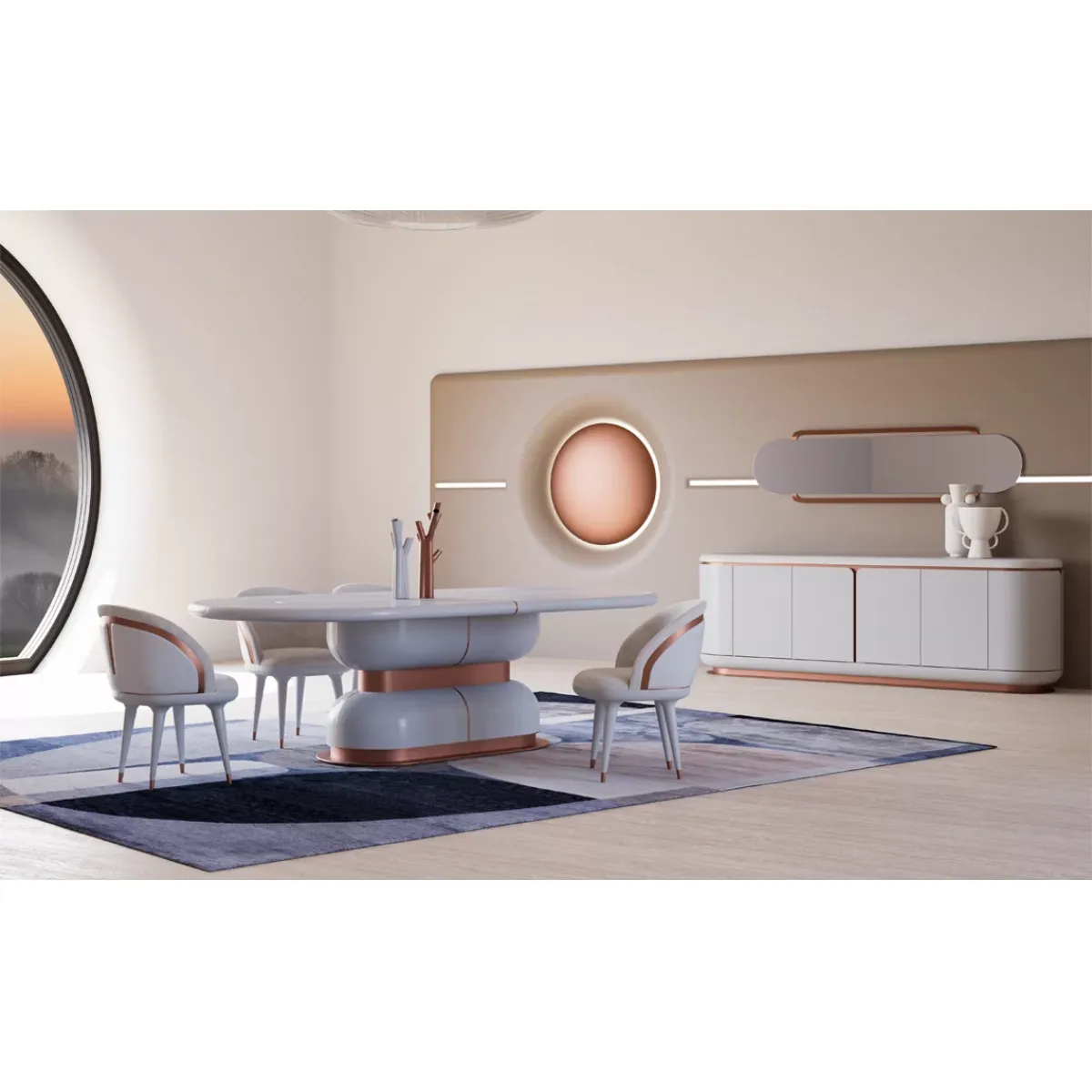 For a cohesive dining setup, explore our collection of luxury dining chair. Pair this chair seamlessly with the White Marble Oval Top Luxury Dining Table with Copper Accents to create a refined and harmonious modern luxury dining space. Also explore our premium collection of luxury hotel furniture.