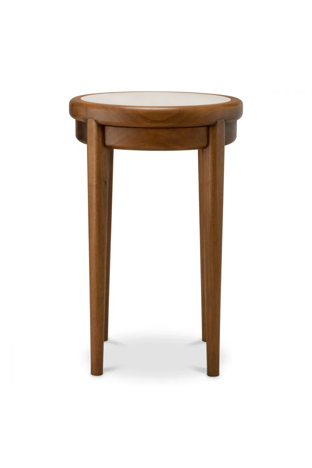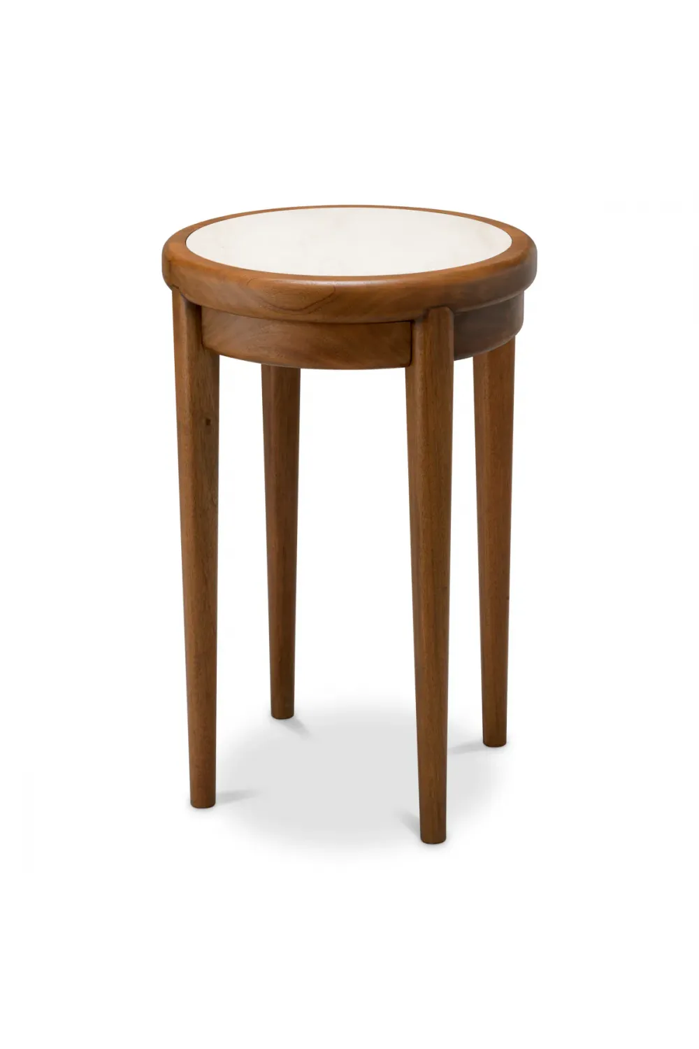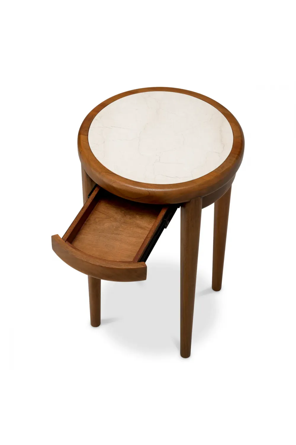 Wooden bedside table crafted from rich mahogany wood in a warm caramel finish, topped with elegant beige marble.The smooth beige marble top introduces natural veining and understated opulence. A discreet soft-close drawer offers seamless storage without disturbing the clean aesthetic. Perfectly proportioned as a luxury bedside table or accent piece, this wooden round table blends function with enduring style.