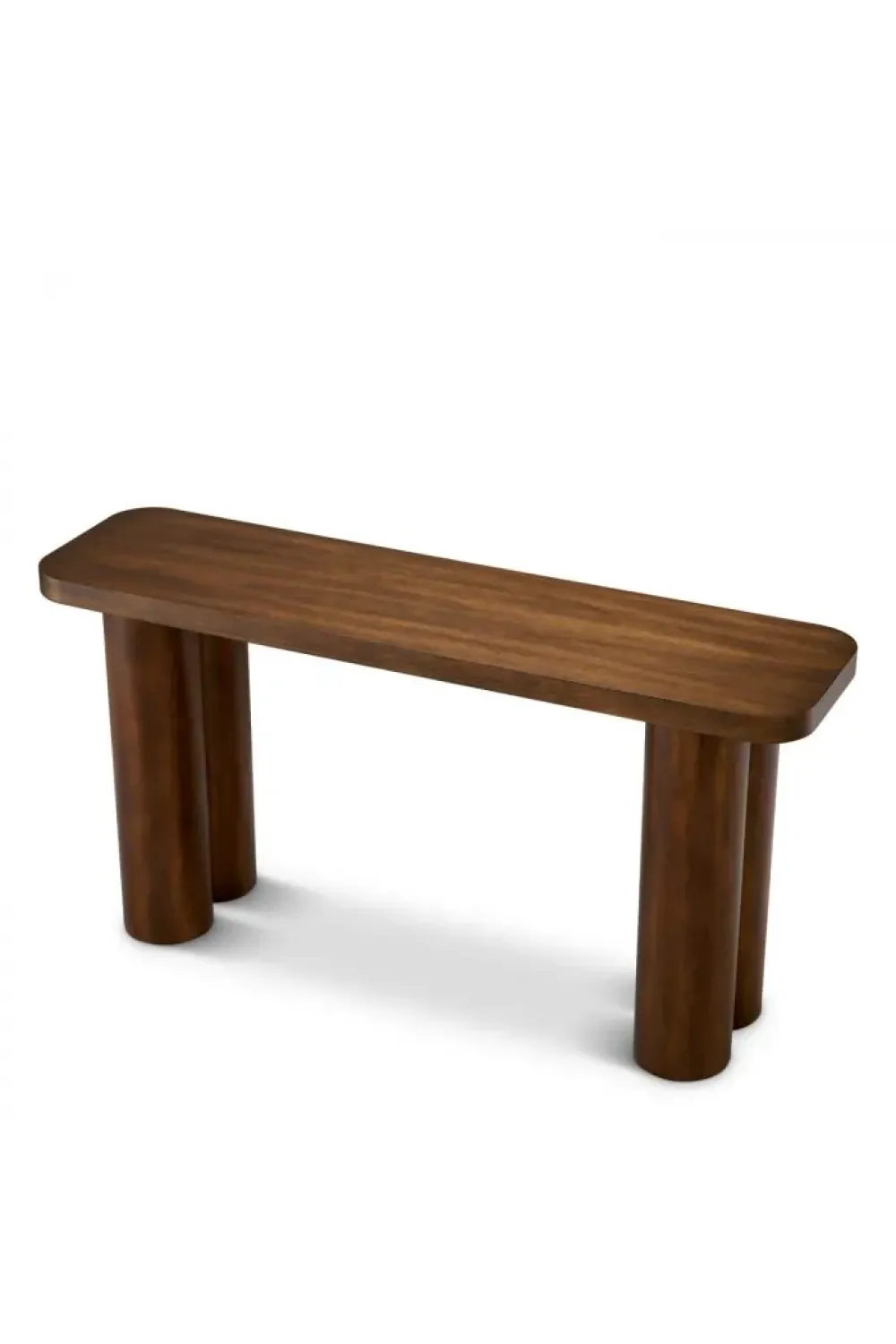Rectangular top console table crafted in premium okoume veneer, defined by smooth proportions and elegantly rounded column legs. With a generous 150 cm width and refined 5 cm tabletop thickness, this luxury console table offers a poised surface for curated décor while enhancing modern interiors with quiet sophistication.