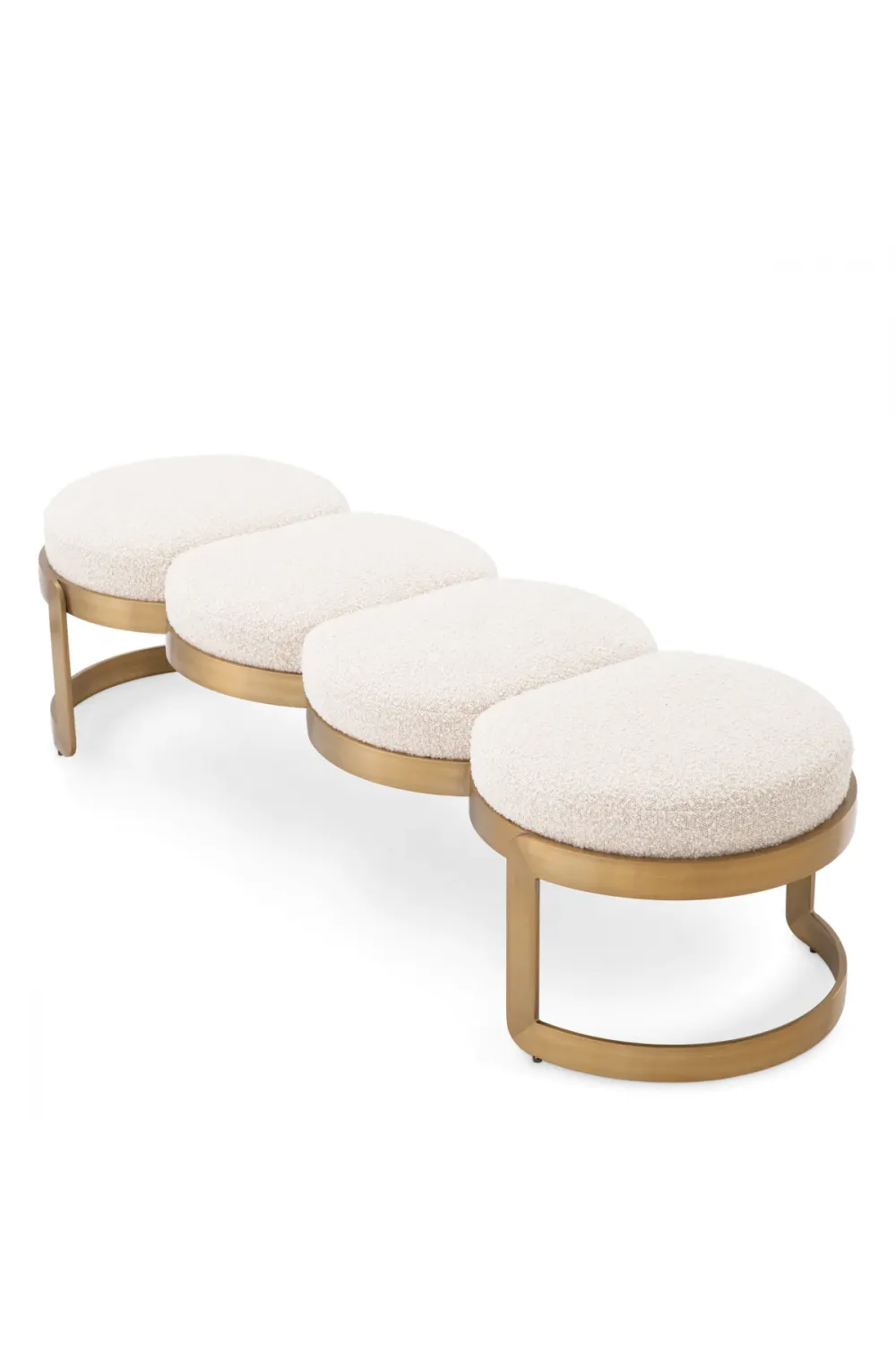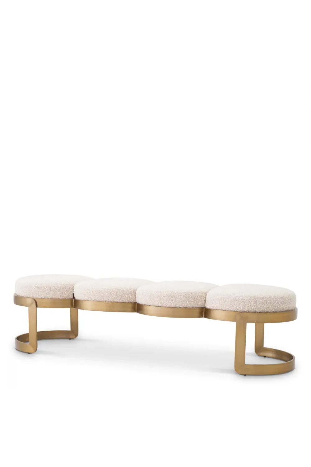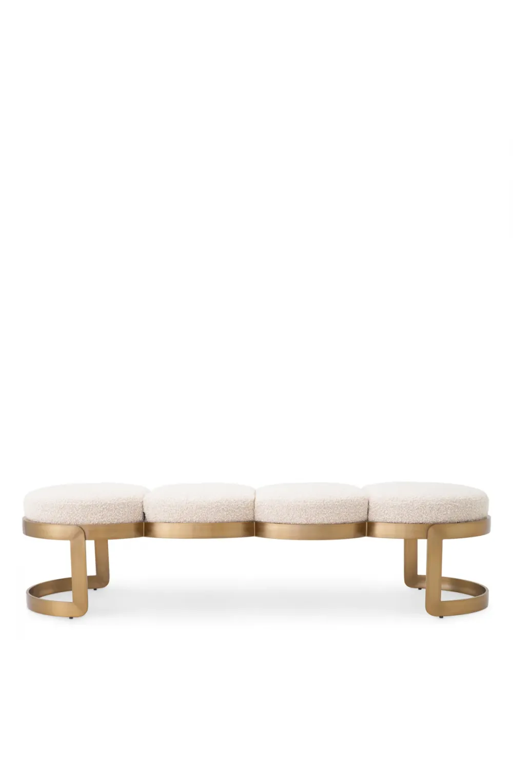 Majestic Bench – Bouclé Cream Upholstery with Brushed Brass Frame