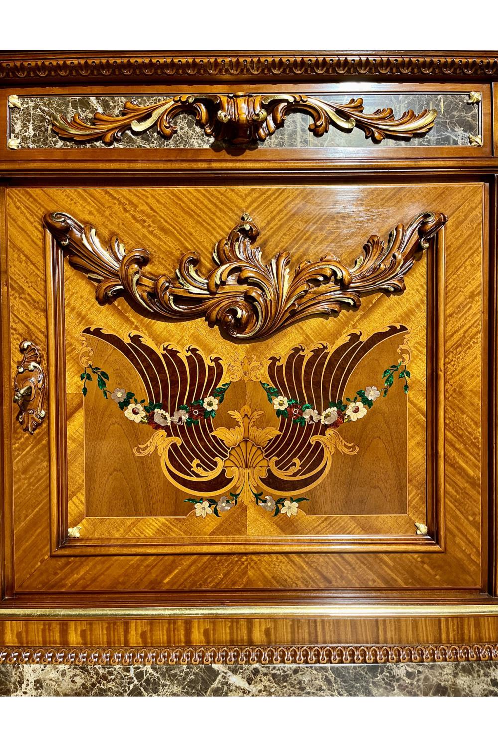 The Majestic Premium Dressing Table blends walnut elegance with hand-applied gold-leaf patina, offering an exquisite balance of artistry and practicality. Framed in warm walnut tones, it features a refined mirror over sideboard design that enhances light, depth, and luxury within any sophisticated interior.