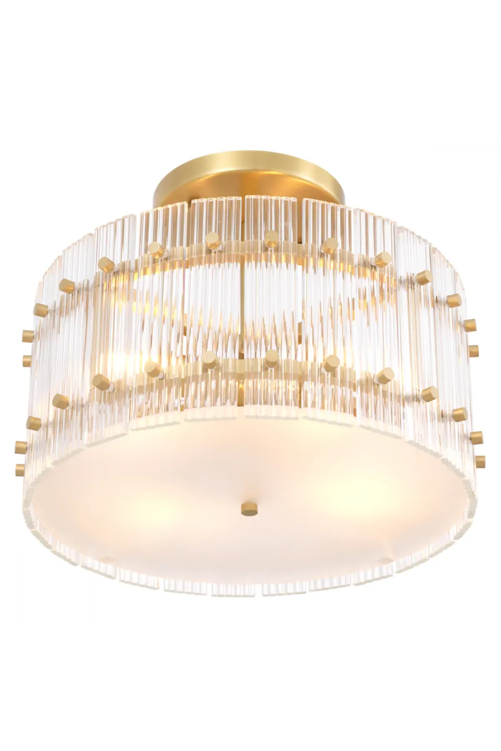 Inspired by the enduring allure of the Art Deco movement, the Modern Art Deco Flush Mount Ceiling Light merges classic geometry with contemporary luxury. Its antique brass frame forms a harmonious circular silhouette adorned with tiered panels of clear and frosted glass, capturing and diffusing light to create a soft, ambient brilliance.
