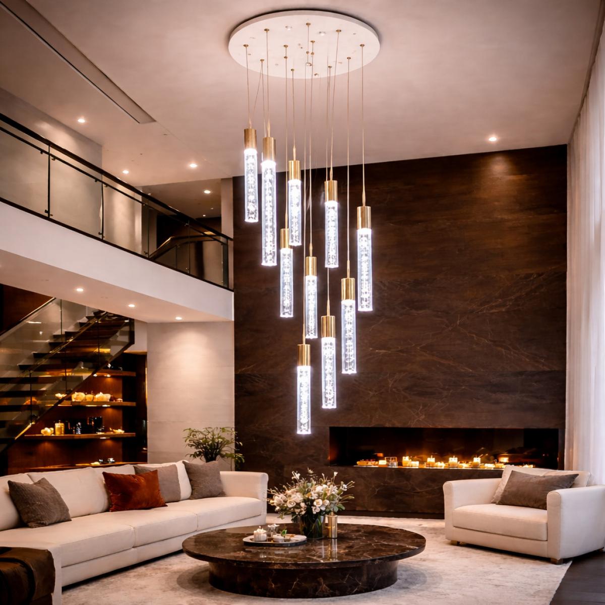 Choosing luxury Chandelier impact doesn’t have to mean visual heaviness. Here, the slender spacing between rods gives the chandelier an open, airy feel, helping it complement minimal interiors while still harmonizing with more elevated decor themes. The cascading cylinders move the eye downward in a gentle, rhythmic pattern, turning overhead lighting into an immersive design feature. If you want ambient illumination with real visual impact—something that feels curated, stylish, and distinctly modern—Modern Crystal Multi -Lights Golden Chandelier With LED Raindrop Tube Pendant Lighting delivers that promise. It brings cohesive sophistication to high-ceiling spaces, enriching daily routines with a refined sparkle and a dramatic, sculptural finish. Browse our luxury chandeliers collections to find statement lighting designs that elevate interiors with elegance, brilliance, and architectural impact.