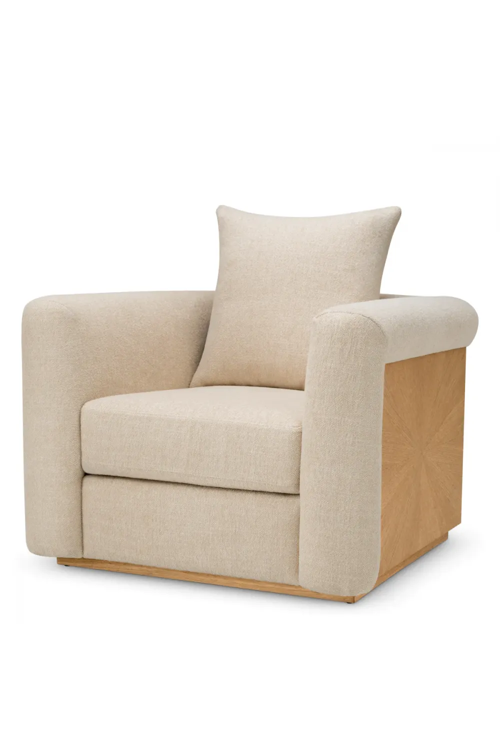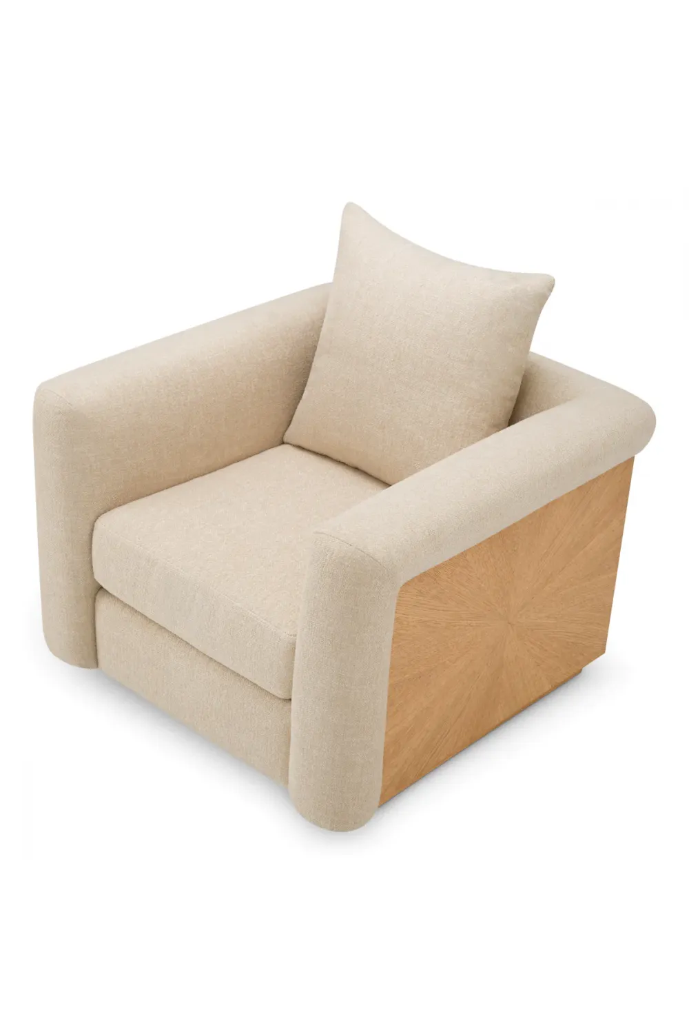 Elevate your interiors with the Nova Luxury Chair, a masterfully designed armchair that blends contemporary style with lasting comfort. Crafted with a natural oak veneer frame and upholstered in soft, neutral-toned fabric, this chair strikes the perfect balance between warmth and sophistication. Its clean lines, plush cushioning, and refined silhouette make it an ideal addition to both modern and classic interiors.