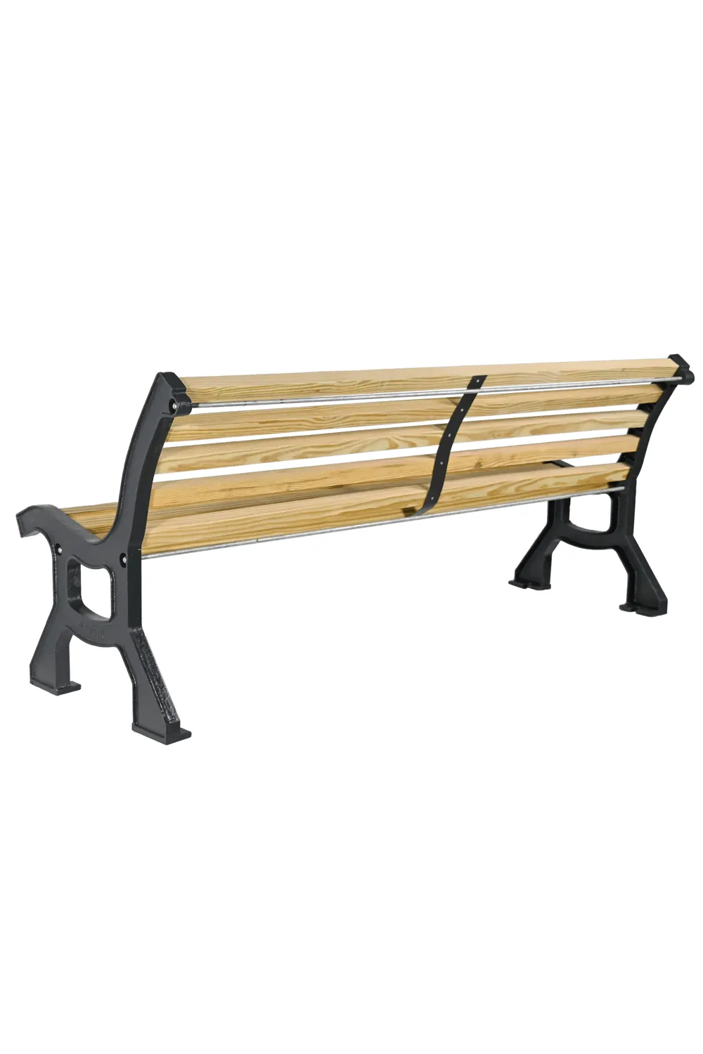 The seat and backrest are made from premium pine wood, chosen for its natural warmth, smooth texture, and refined grain. The bench features a reinforcing profile and galvanized steel bolts, enhancing structural stability and durability for long-term use. Each piece is a testament to precision craftsmanship — designed to complement outdoor aesthetics from luxury courtyards to serene park alleys.