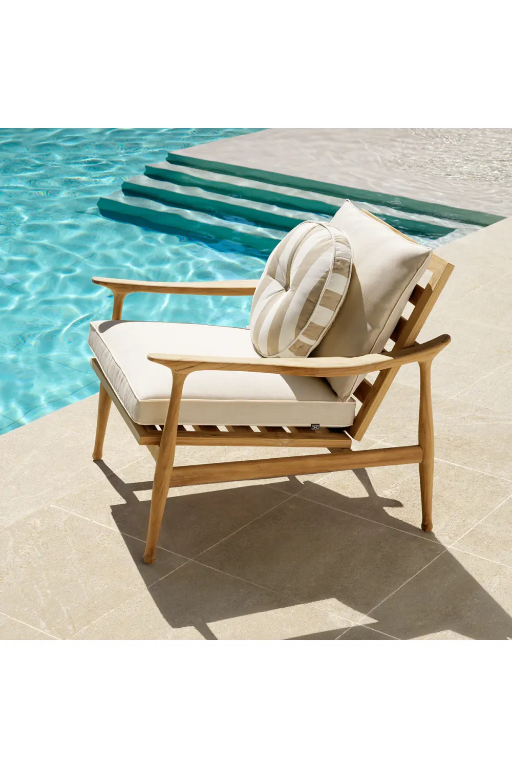 Upholstered in solution-dyed acrylic fabric, it offers exceptional resistance to fading and wear caused by sunlight or chemical exposure. The foam-filled core provides plush, lasting comfort, while the contrast piping adds a tailored finishing touch.