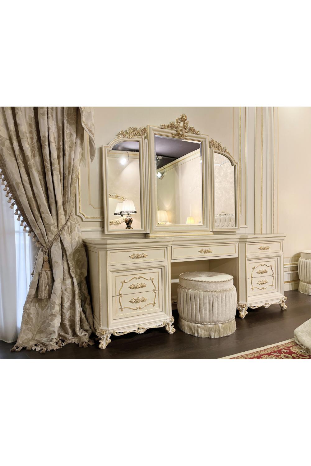 Home > Royal Furniture > Royal Bedroom Collection > Premium Ivory Gold Mirror – Luxury Wall Mirror for Dressing Table with Elegant Gold Accents