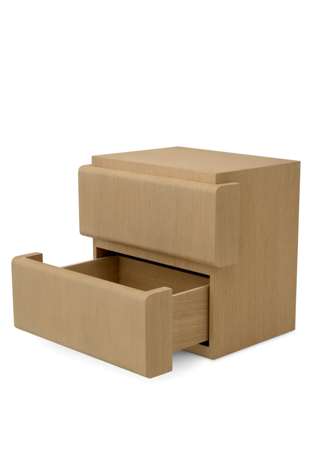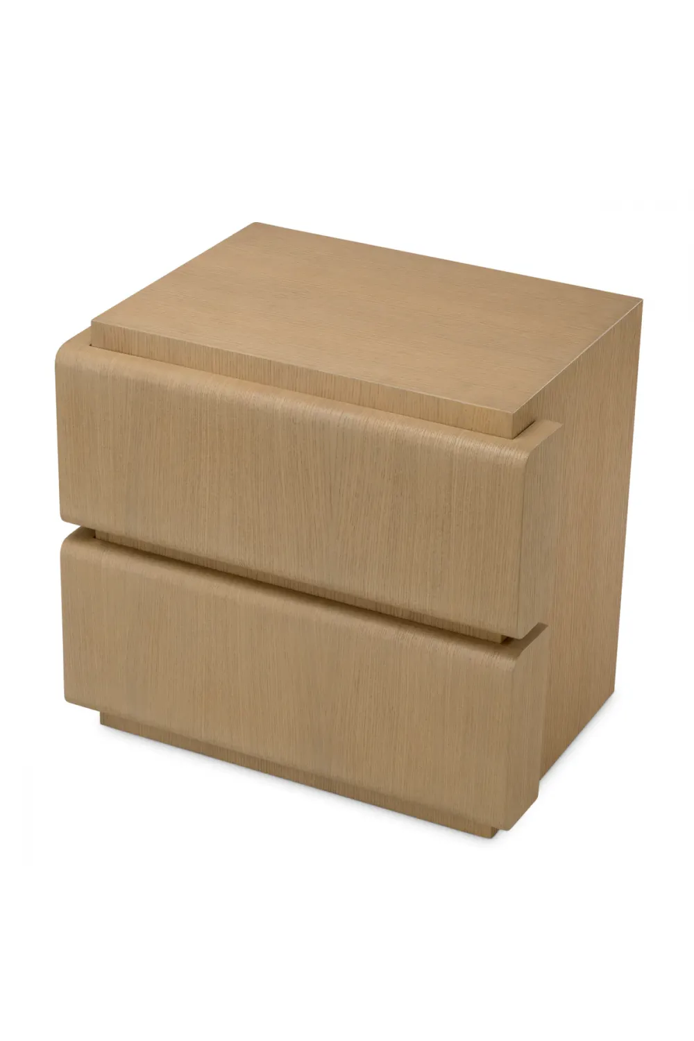 The Regal Oak Nightstand brings refined modernity to timeless craftsmanship. Wrapped in natural oak veneer, its elegant silhouette and sculptural drawer design evoke serene luxury for contemporary interiors.