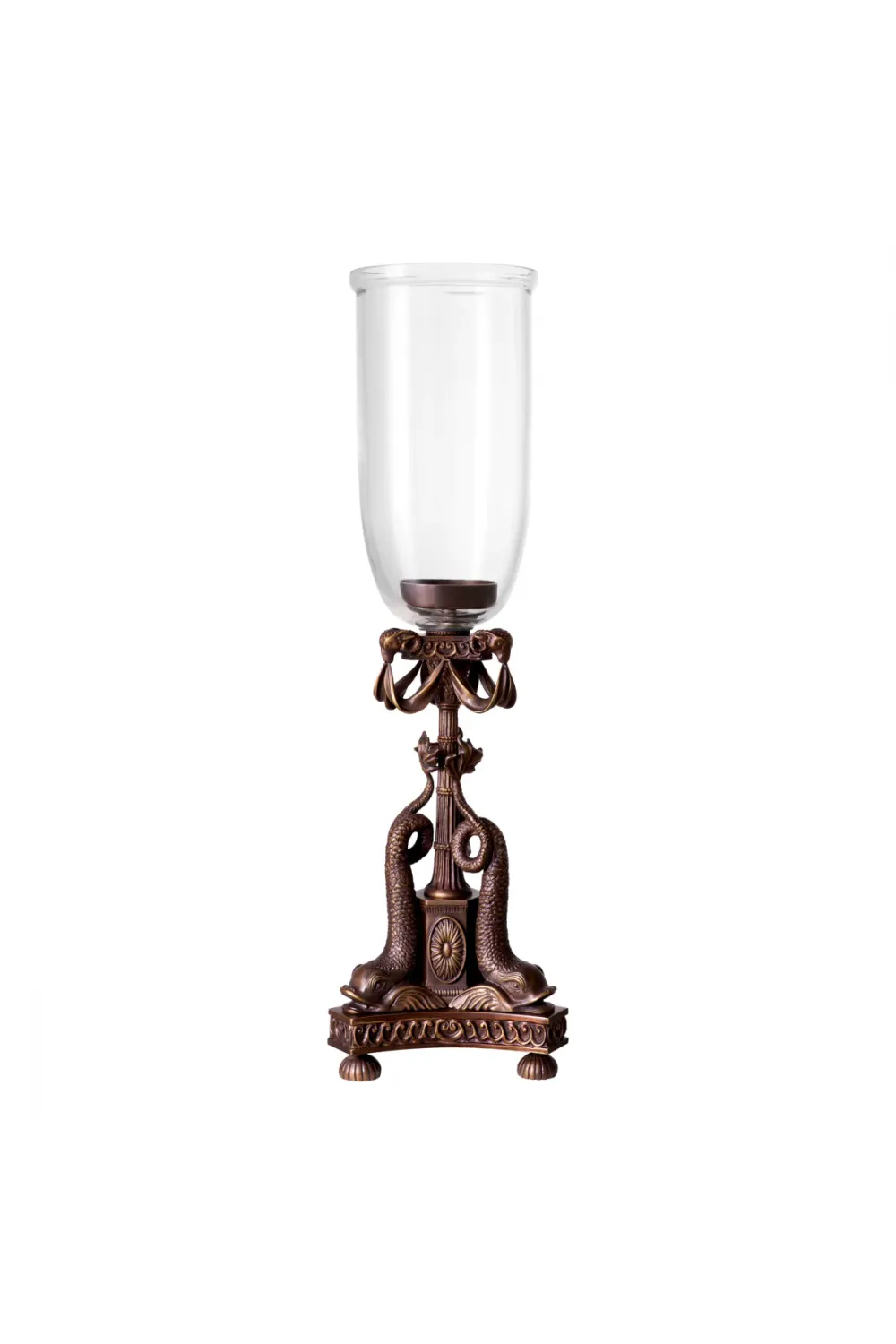 Experience regal illumination with the Royal Britannia Hurricane, a stunning piece that captures the charm of candlelit elegance. Featuring a bronze highlight finish and clear glass, this hurricane lamp pays homage to neoclassical artistry, offering both timeless beauty and refined functionality. Perfect for luxury interiors, it brings a soft, dignified glow to your home.