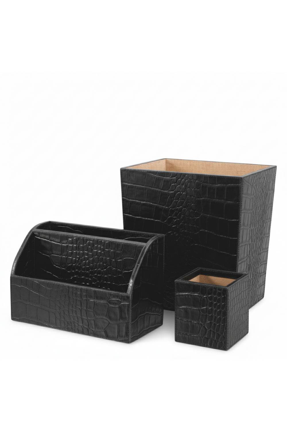 This three-piece ensemble is meticulously handcrafted from high-quality croco-embossed leather, exuding a rich texture and a distinguished appearance. Designed for discerning professionals, the set elevates your workspace with refined elegance and superior organization.
