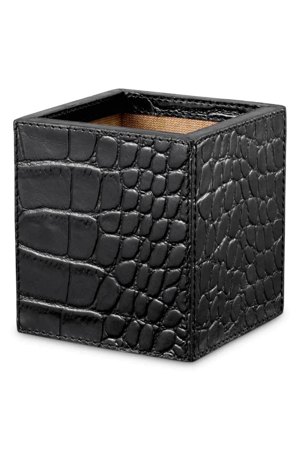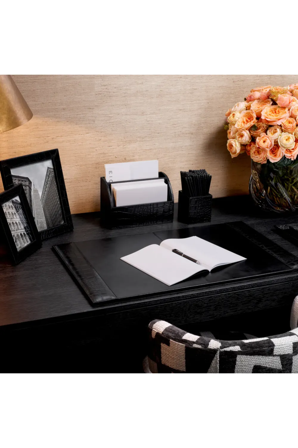 The subtle sheen of the black leather adds a touch of modern sophistication, while the croco pattern introduces a distinctive character that enhances both traditional and contemporary interiors. Every edge is flawlessly finished, reflecting artisanal precision and attention to detail.