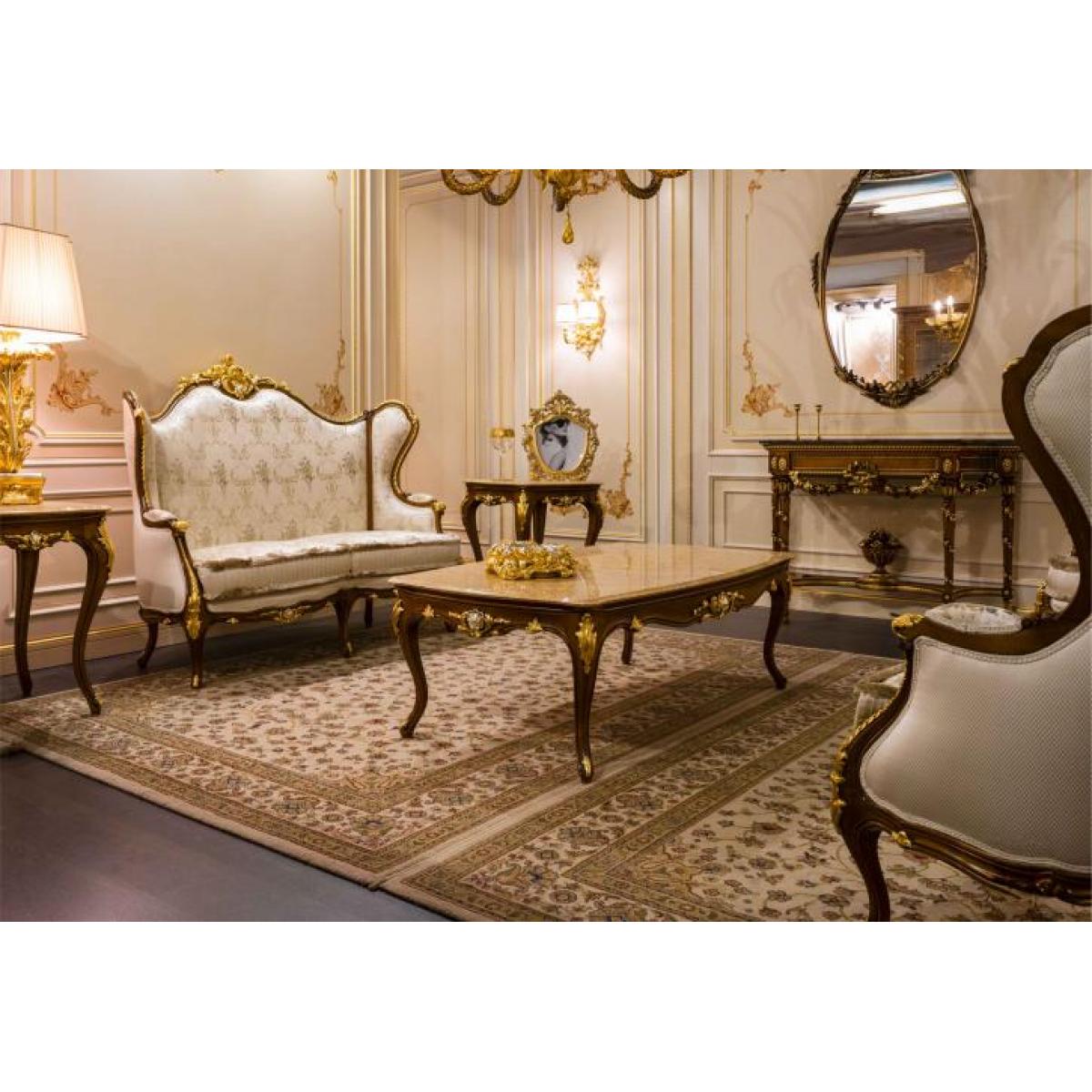 The Royal Two-Seater Sofa is a masterpiece of European artistry and noble design. Sculpted from solid wood and finished in a deep, natural walnut tone, it radiates warmth and refinement. The delicate gold and silver leaf embellishments highlight its classic silhouette, capturing the essence of royal interiors found in Europe’s grand estates and elegant villas.
