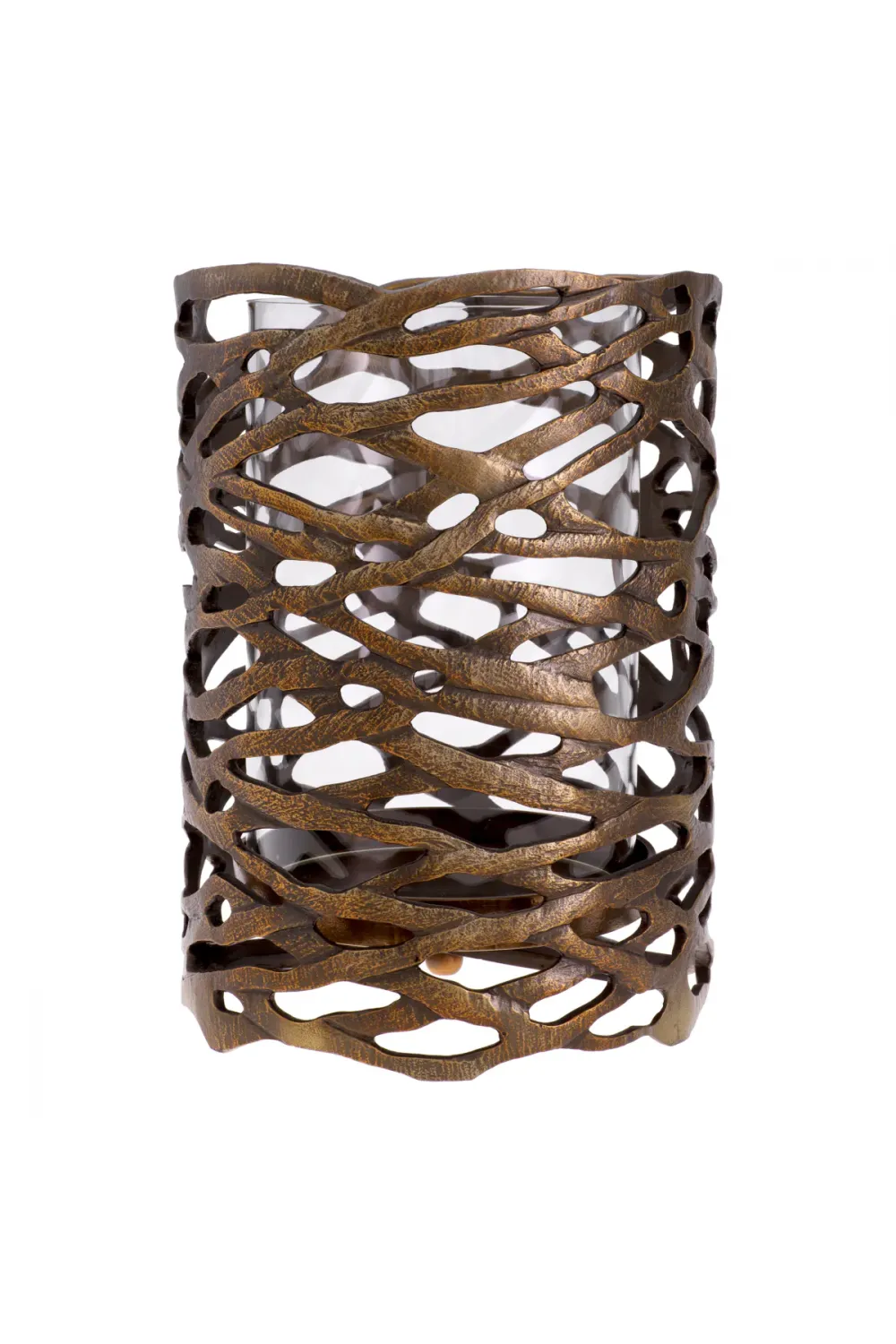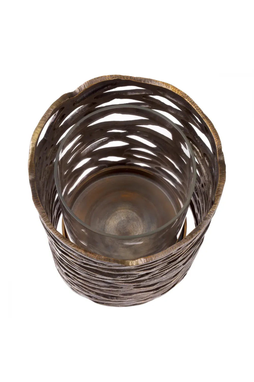The Royal Lanai Hurricane S captures the art of timeless lighting design. Its vintage brass body radiates a warm metallic tone, while the clear glass shade gently diffuses candlelight to create a serene, inviting atmosphere. Ideal for artificial or pillar candles up to ø 15 cm, this piece adds a subtle yet striking accent to sideboards, consoles, and dining arrangements.