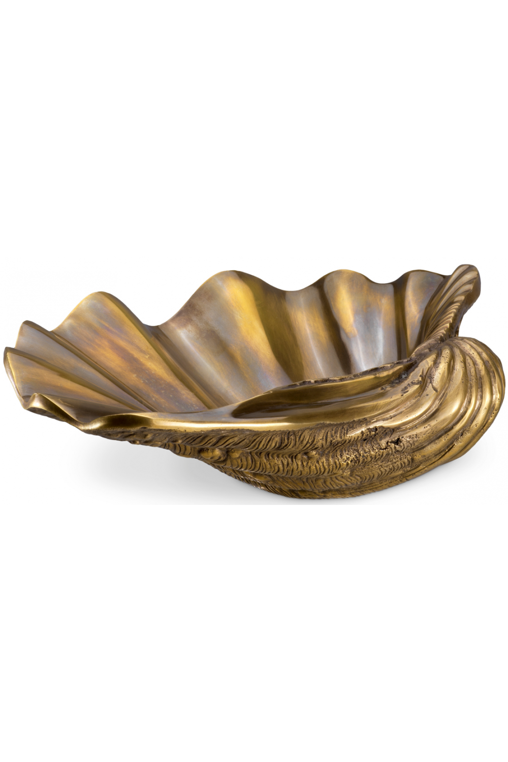 The Royale Ocean Essence Bowl embodies refined luxury and natural inspiration. Crafted from solid brass in a vintage finish, its sculptural seashell form radiates elegance and versatility, making it a stunning statement for sophisticated interiors.