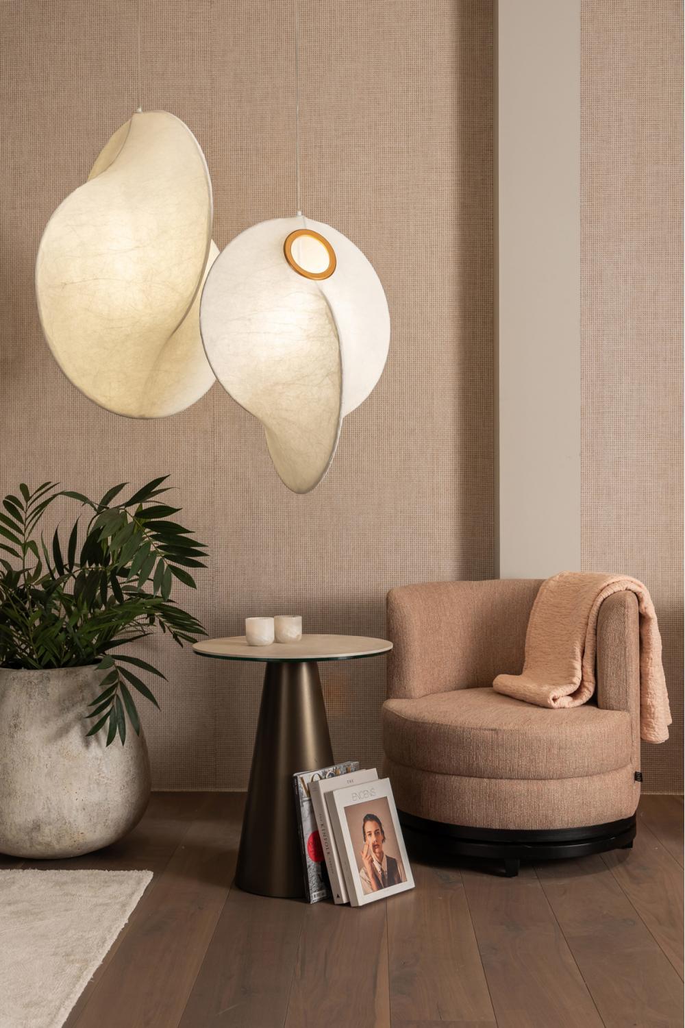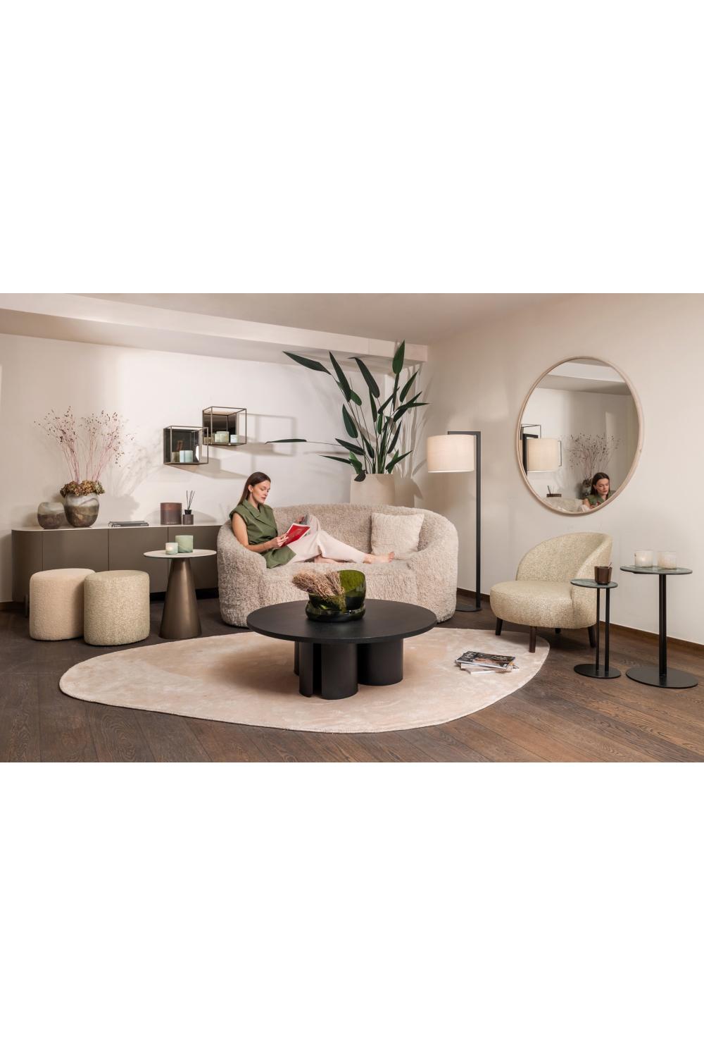 The table stands on a powder-coated metal frame, ensuring strength while maintaining a light, sculptural form. Its neutral cream palette and round shape make it exceptionally versatile — equally suited for sophisticated living rooms, stylish lounges, or elegant bedroom corners.