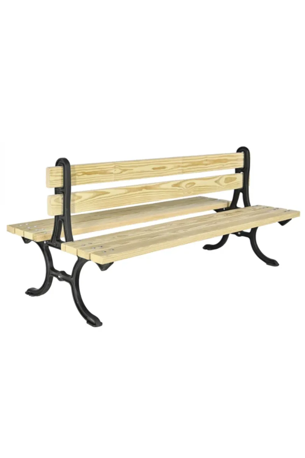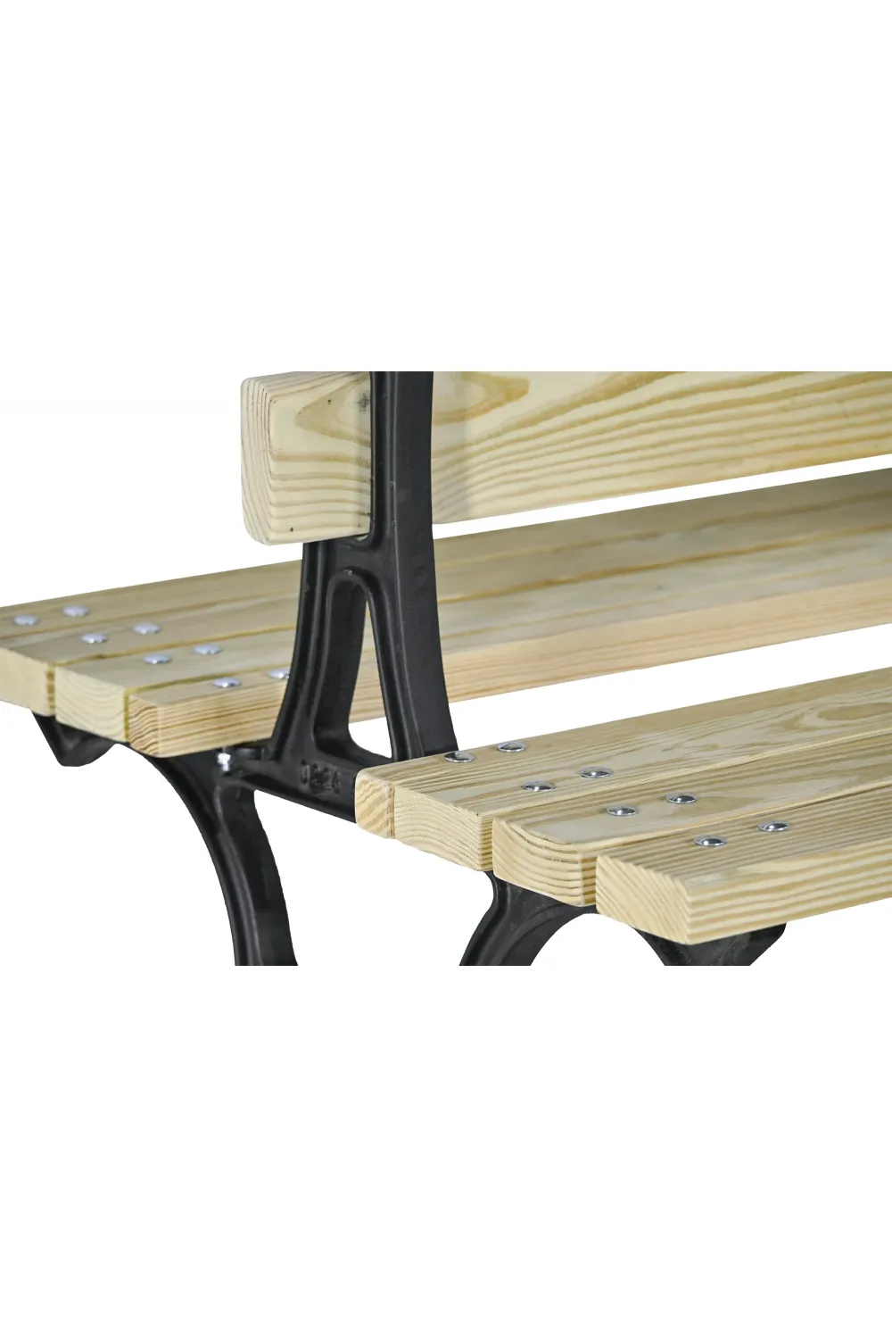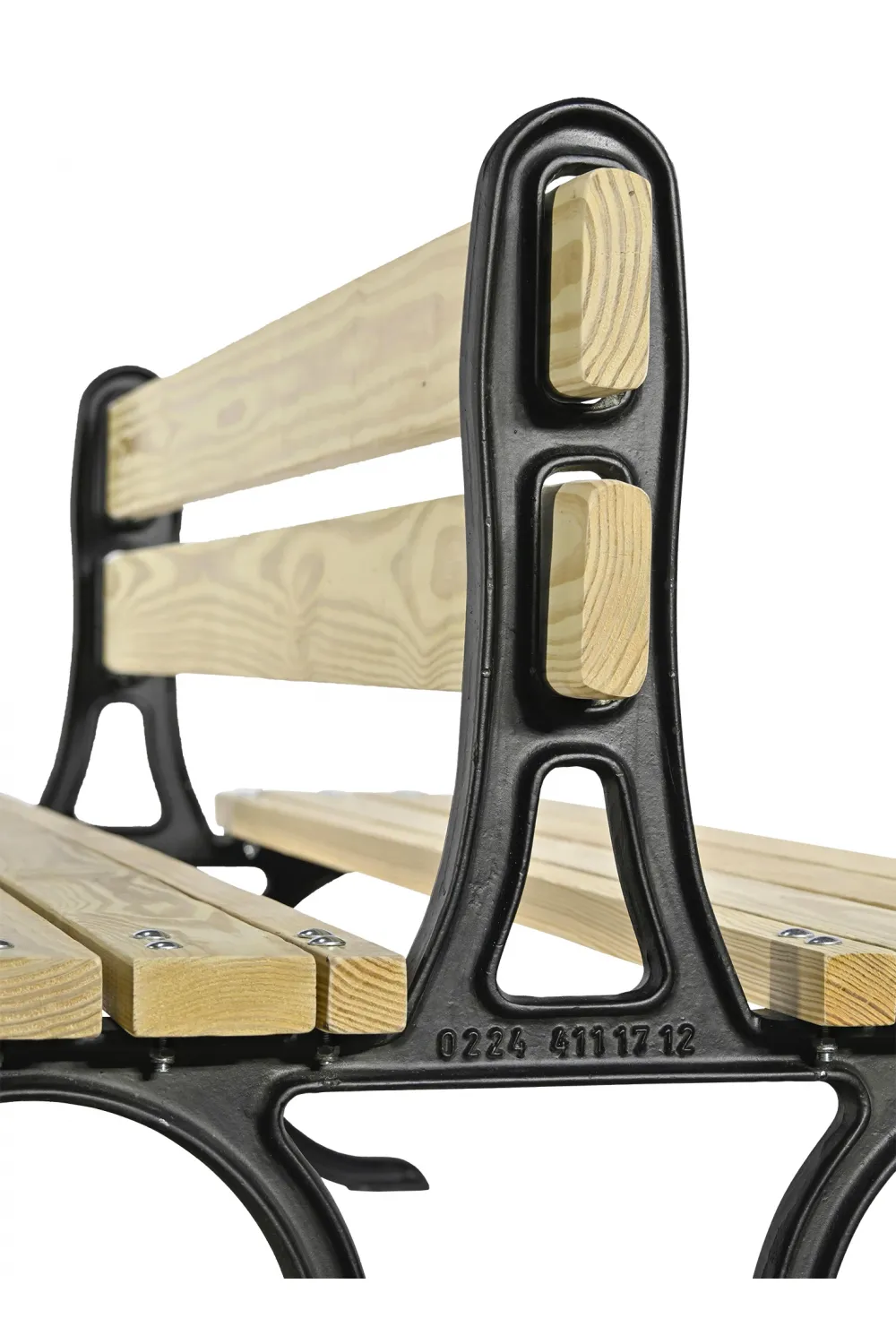 Crafted from Bulgarian spruce, tropical hardwood, or American impregnated pine, the bench radiates warmth and sophistication through its natural grain and refined texture. Reinforcing profiles ensure stability, and galvanized steel bolts deliver long-lasting structural integrity.