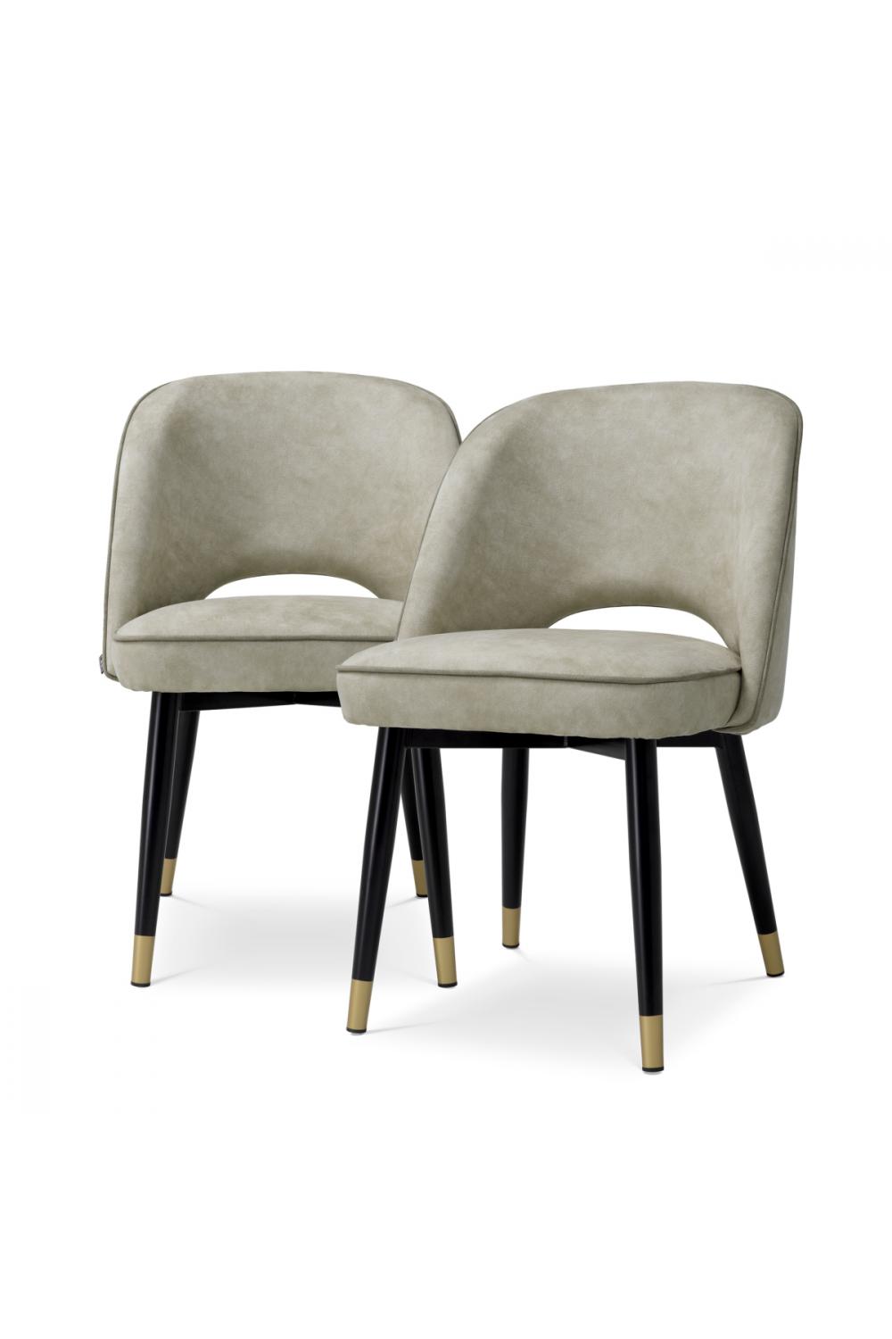 The collection’s defining feature is its sculpted open-back profile, designed for ergonomic comfort and visual lightness. The tapered legs, accented with subtle metallic detailing, bring architectural harmony and understated glamour to the design. Each set of two chairs embodies meticulous craftsmanship, from its contouring to its fine piping and upholstery finish.
