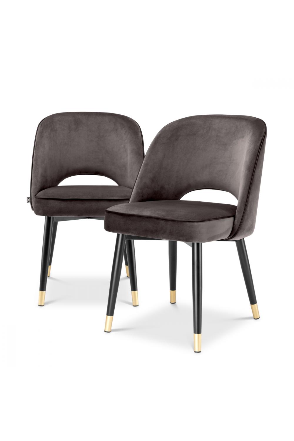 The collection’s defining feature is its sculpted open-back profile, designed for ergonomic comfort and visual lightness. The tapered legs, accented with subtle metallic detailing, bring architectural harmony and understated glamour to the design. Each set of two chairs embodies meticulous craftsmanship, from its contouring to its fine piping and upholstery finish.