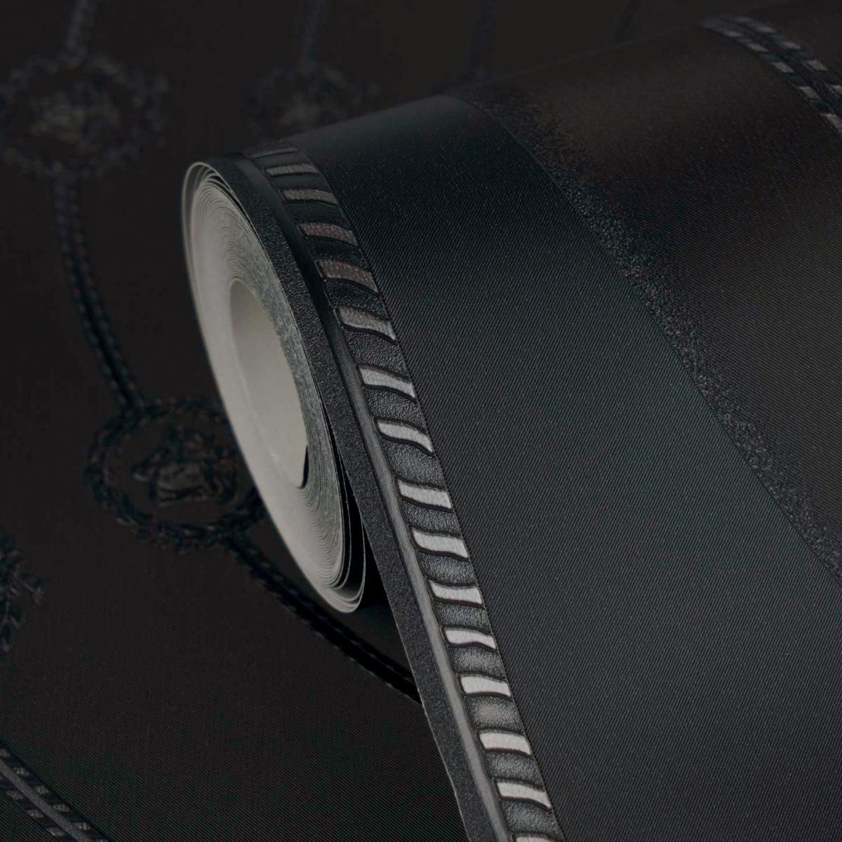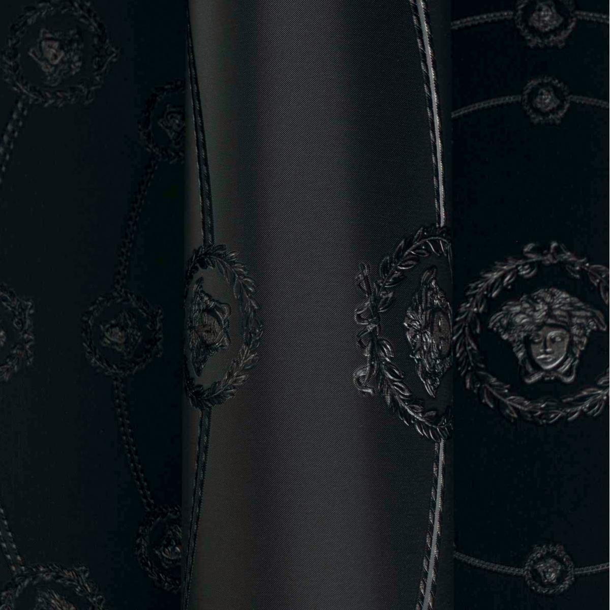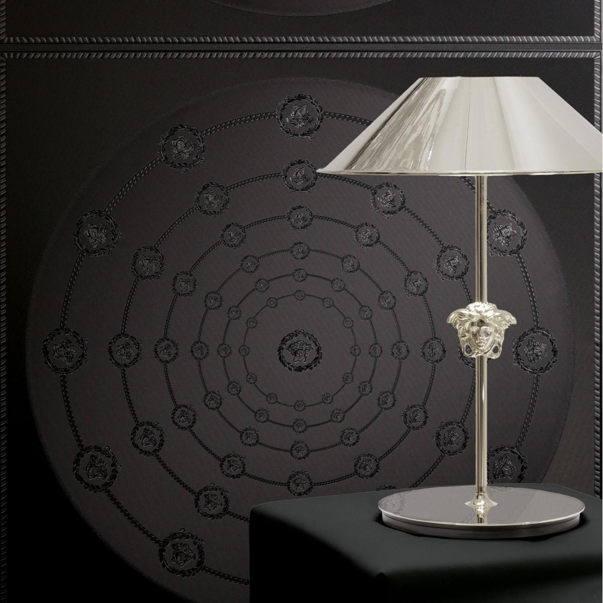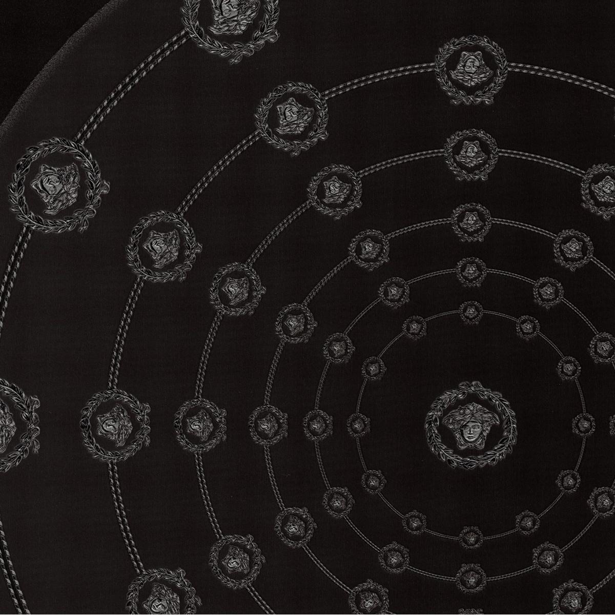 Versace Black Silver Circular Medusa Ornaments Designer Wallpaper by Luxury Group International