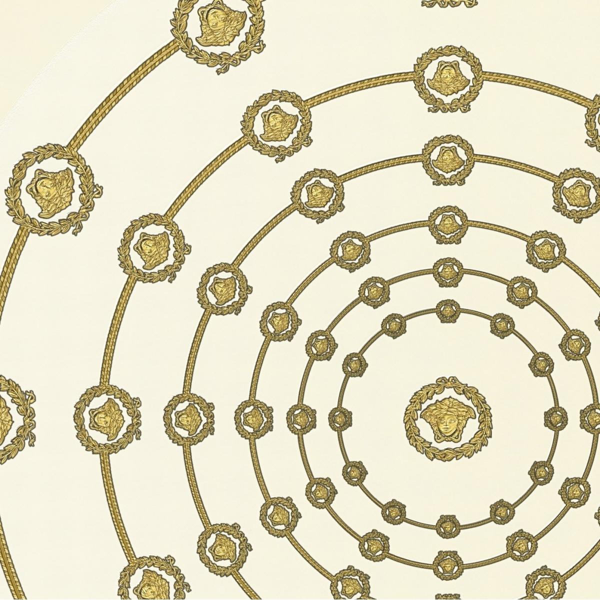Versace Circular Medusa Ornaments Non Woven Wallpaper White Gold Black by Luxury Group International